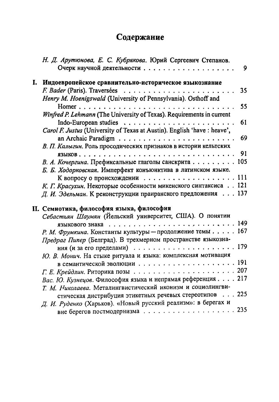 Сборник включает статьи на темы, поднятые в научном творчестве лингвиста, философа языка и культуролога академика Ю. С. Степанова. Это работы по теоретической лингвистике, индоевропейскому сравнительно-историческому языкознанию, семиотике, философии, философии языка, искусствознанию и литературоведению. Особое внимание уделяется греко-индоиранскому языкознанию, вопросам литовского языка, интерпретации текста, семантической типологии, литературе и искусству (Гоголь, Достоевский, Лопе де Вега, Пруст, Веласкес, Суриков). Книга адресуется широкому кругу семиологов, лингвистов, философов, литературоведов и искусствоведов.