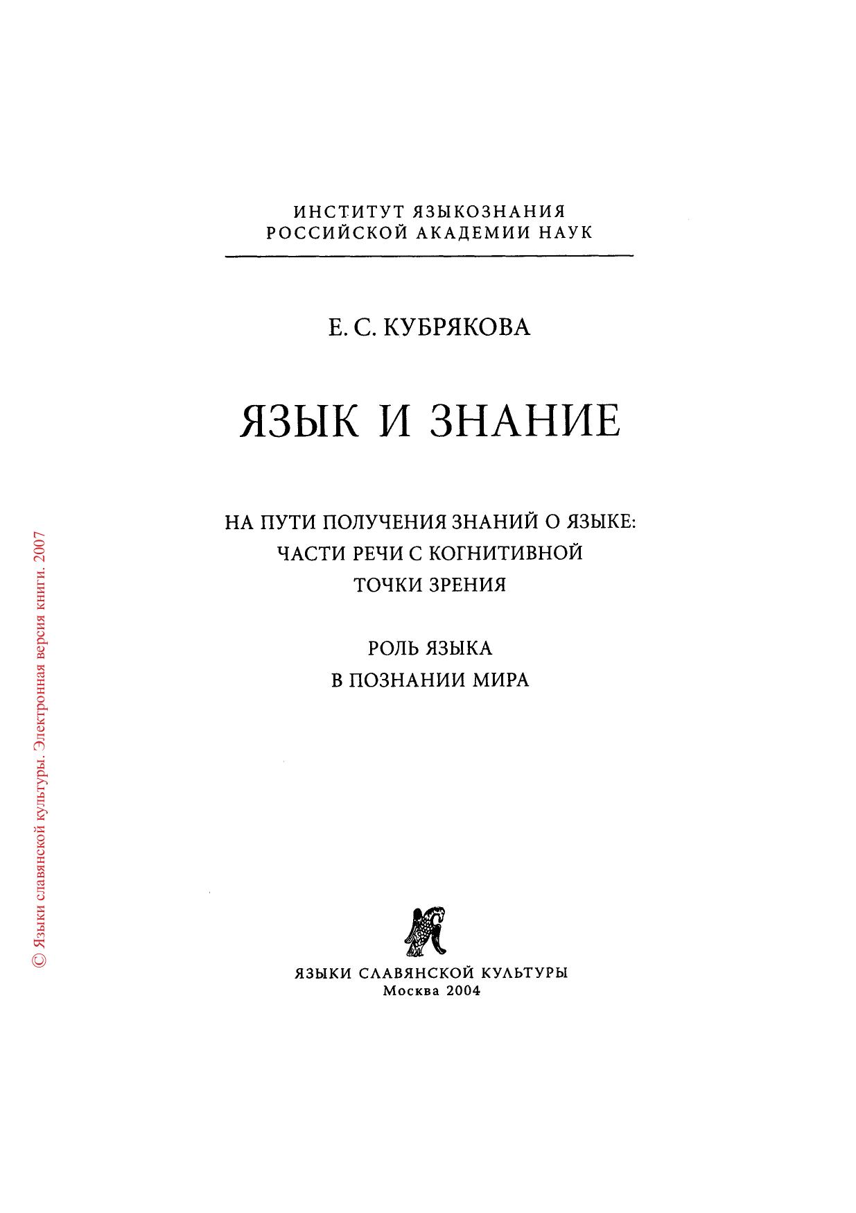 Язык и знание. На пути получения знаний о языке: части речи с когнитивной точки зрения. Роль языка в познании мира