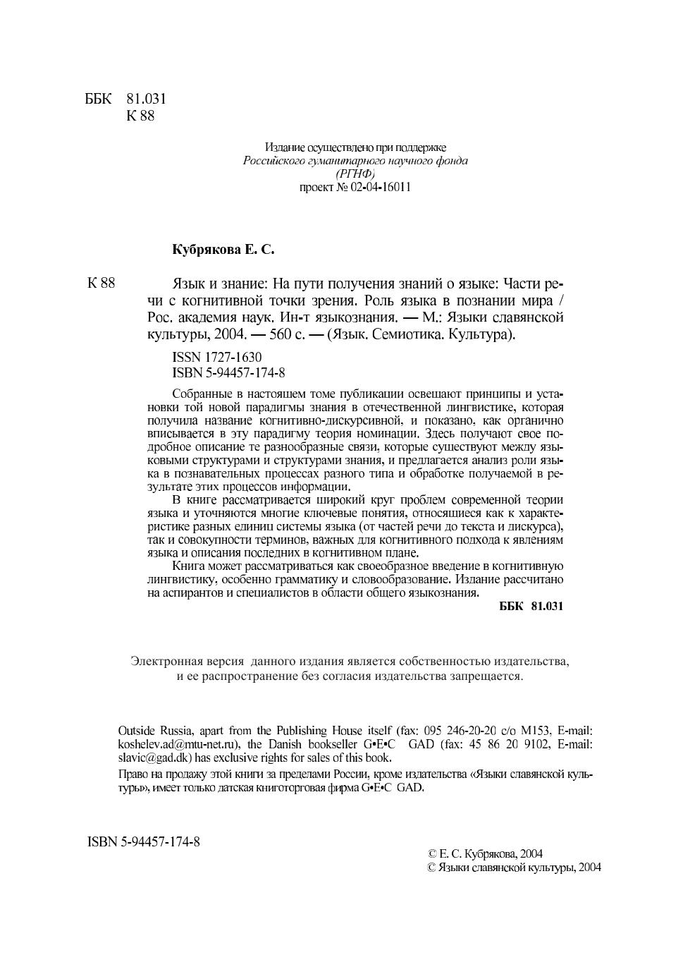 Собранные в настоящем томе публикации освещают принципы и установки той новой парадигмы знания в отечественной лингвистике, которая получила название когнитивно-дискурсивной, и показано, как органично вписывается в эту парадигму теория номинации. В книге рассматривается широкий круг проблем современной теории языка и уточняются многие ключевые понятия, относящиеся как к характеристике разных единиц системы языка (от частей речи до текста и дискурса), так и совокупности терминов, важных для когнитивного подхода к явлениям языка и описания последних в когнитивном плане. Книга может рассматриваться как своеобразное введение в когнитивную лингвистику, особенно грамматику и словообразование. Издание рассчитано на аспирантов и специалистов в области общего языкознания.