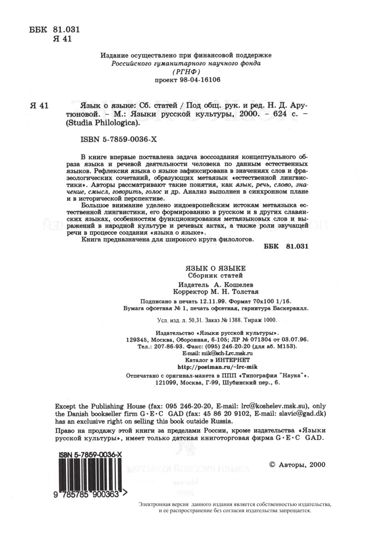 В книге впервые поставлена задача воссоздания концептуального образа языка и речевой деятельности человека по данным естественных языков. Рефлексия языка о языке зафиксирована в значениях слов и фразеологических сочетаний, образующих метаязык «естественной лингвистики». Авторы рассматривают такие понятия как «язык», «речь», «слово», «значение», «смысл», «говорить», «голос» и др. Анализ выполнен в синхронном плане и в исторической перспективе. Большое внимание уделено индоевропейским истокам метаязыка естественной лингвистики, его формированию в русском и других славянских языках,особенностям функционирования метаязыковых слов и выражений в народной культуре и речевых актах, а также роли звучащей речи в процессе создания «языка о языке».