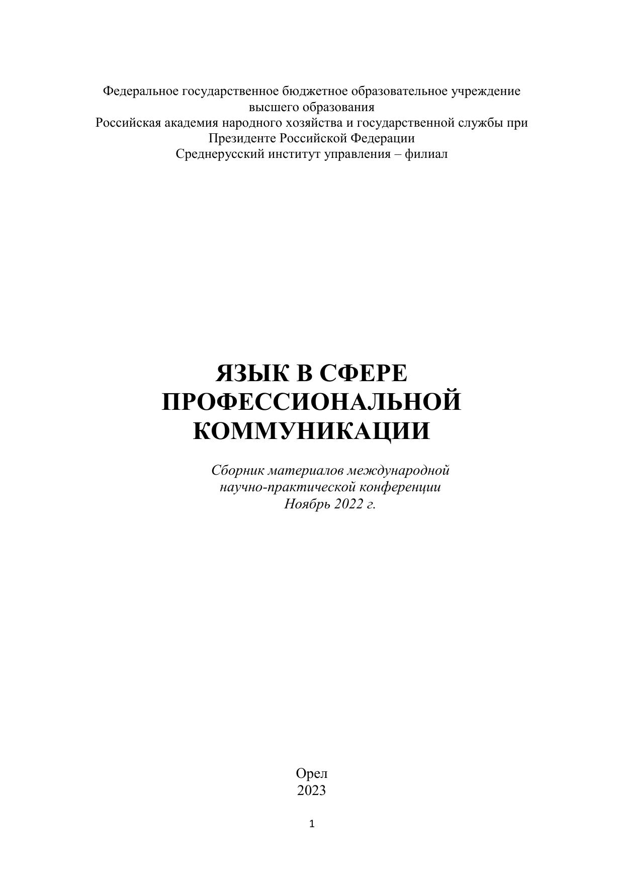 Язык в сфере профессиональной коммуникации: Сборник материалов международной научно-практической конференции