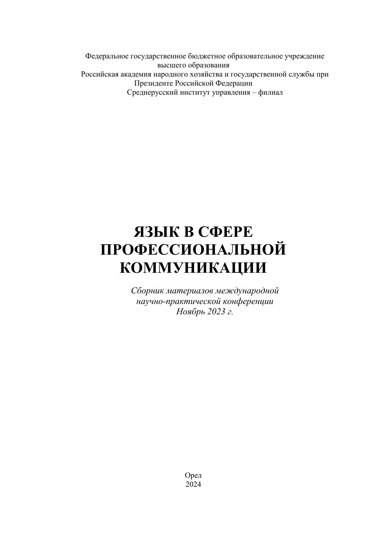 Язык в сфере профессиональной коммуникации: Сборник материалов международной научно-практической конференции