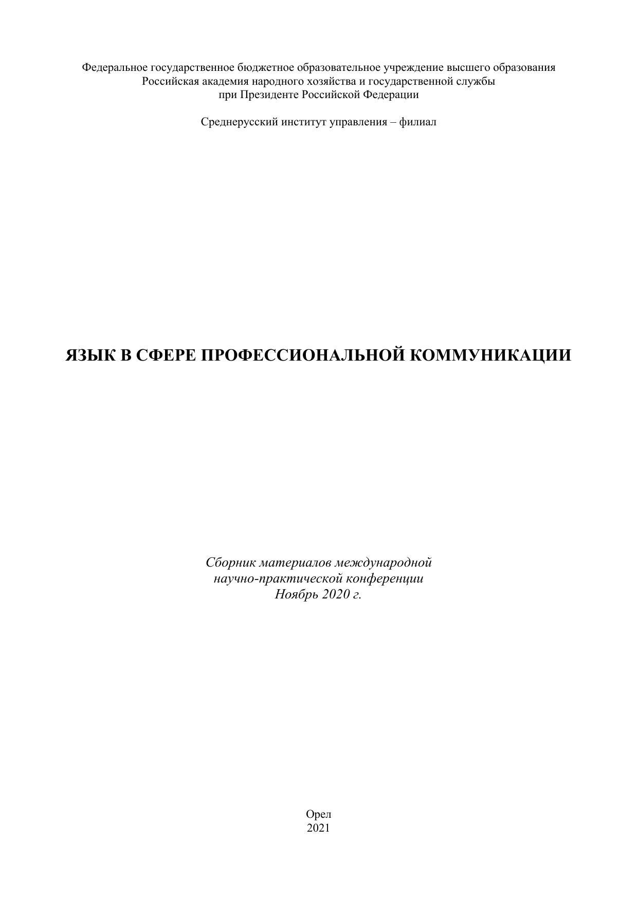 Язык в сфере профессиональной коммуникации: Сборник материалов международной научно-практической конференции. Часть I
