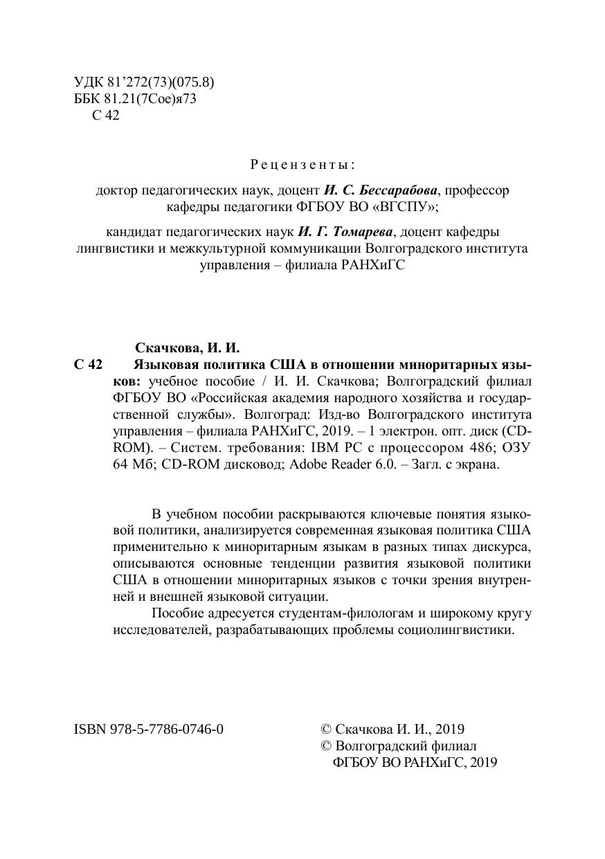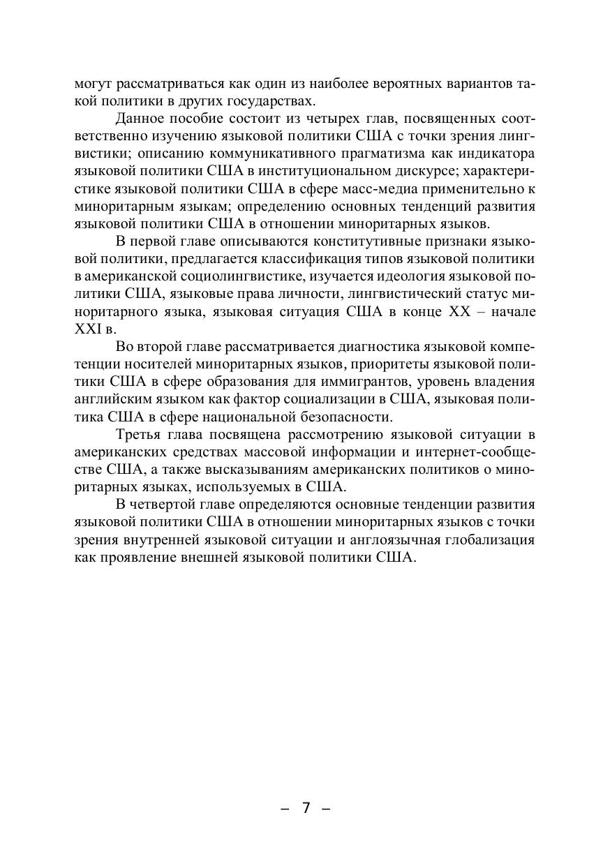 В учебном пособии раскрываются ключевые понятия языковой политики, анализируется современная языковая политика США применительно к миноритарным языкам в разных типах дискурса, описываются основные тенденции развития языковой политики США в отношении миноритарных языков с точки зрения внутрен-ней и внешней языковой ситуации. Пособие адресуется студентам-филологам и широкому кругу исследователей, разрабатывающих проблемы социолингвистики.