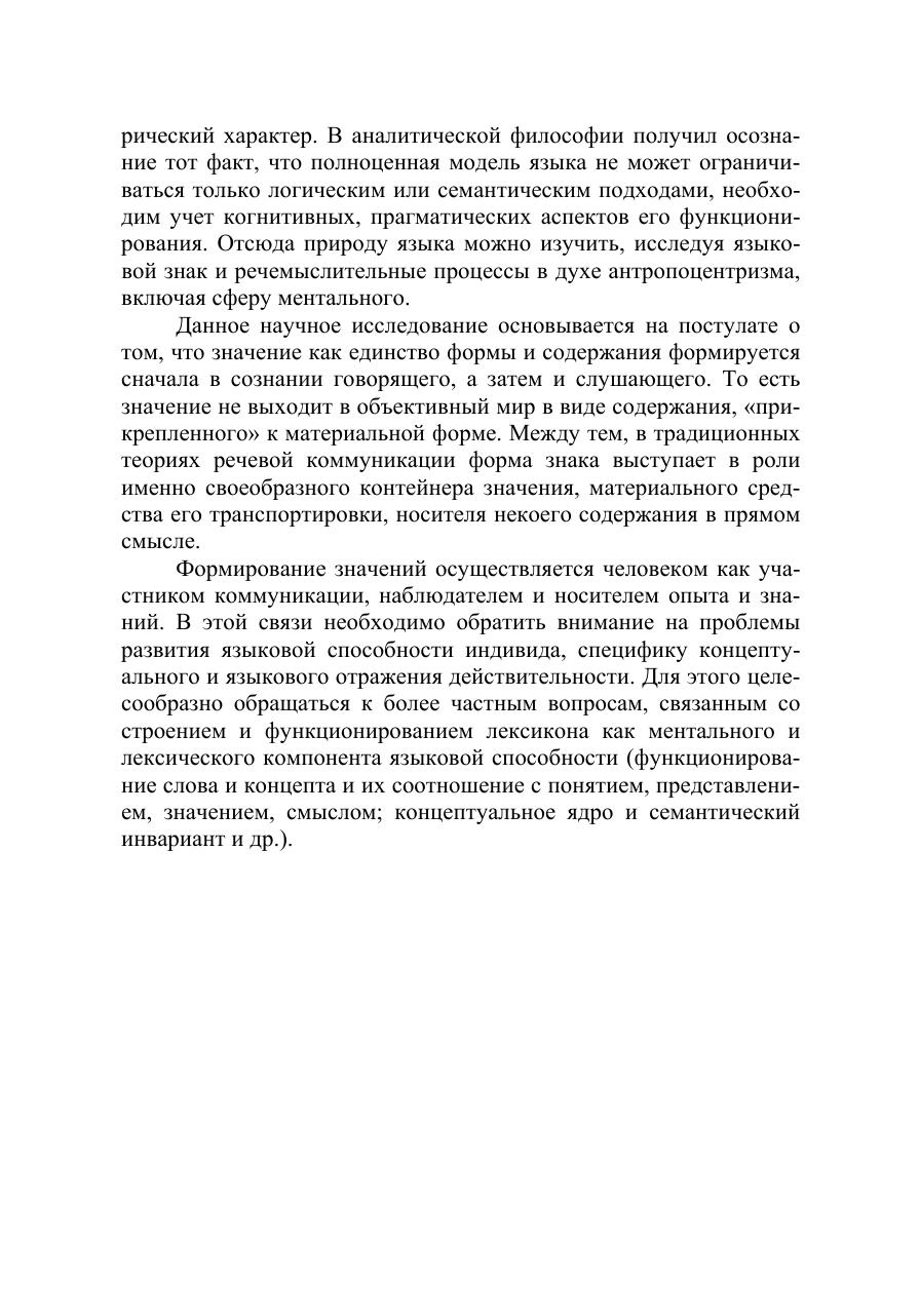 Объектами исследования в данной монографии являются коммуникативный акт на знаковом уровне и речемыслительные процессы, связанные с порождением и восприятием высказывания в их связи с методологической проблематикой философского знания. Перечень поднимаемых проблем помогает постичь механизмы работы интеллекта, моделировать речемыслительные процессы (насколько позволяет языковая интуиция), предсказывать дальнейшее развития семантики слов. Монография ориентирована на специалистов в области философии языка, когнитивной лингвистики, семиотики, психолингвистики, всех, интересующихся проблемами исследования языка.