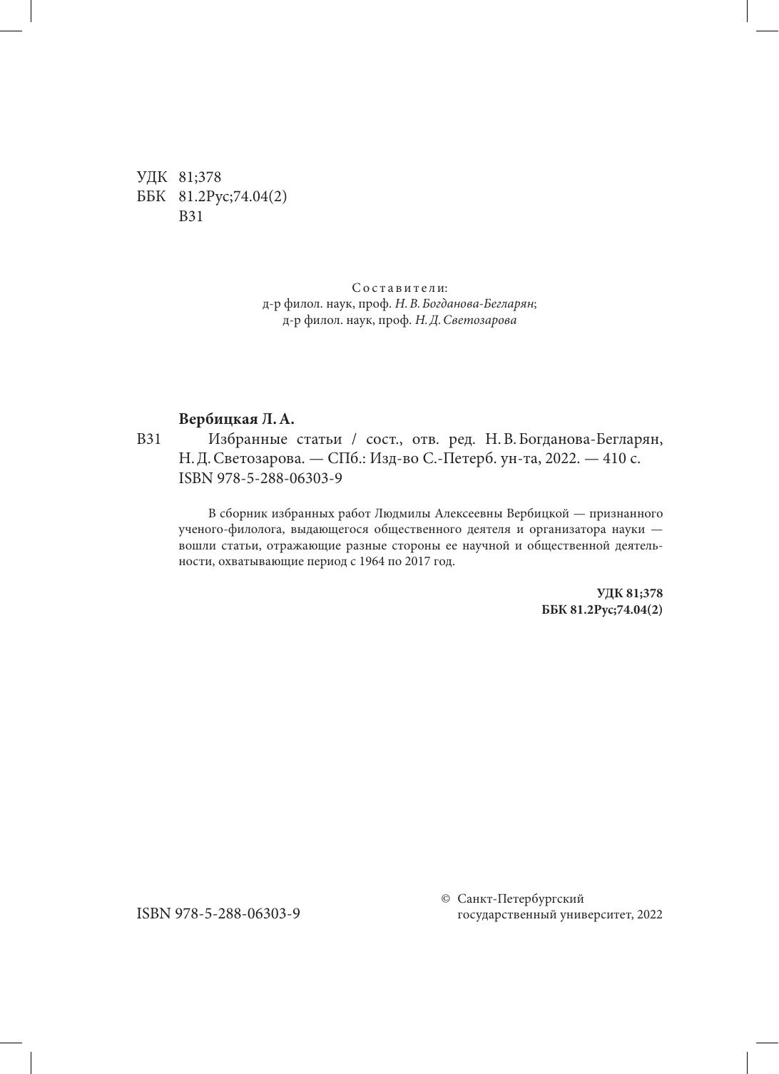 В сборник избранных работ Людмилы Алексеевны Вербицкой - признанного ученого-филолога, выдающегося общественного деятеля и организатора науки - вошли статьи, отражающие различные стороны ее научной и общественной деятельности, охватывающие период с 1964 по 2017 год.