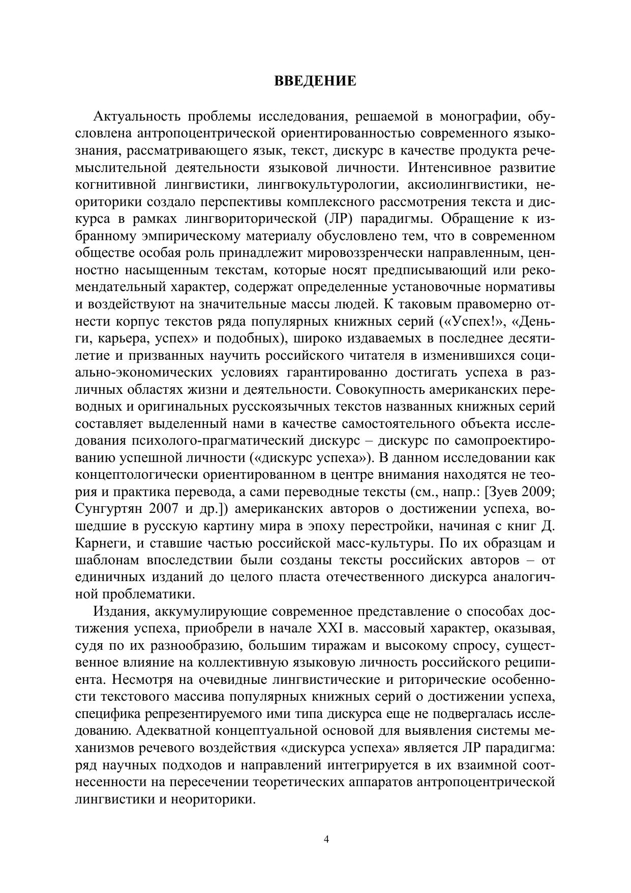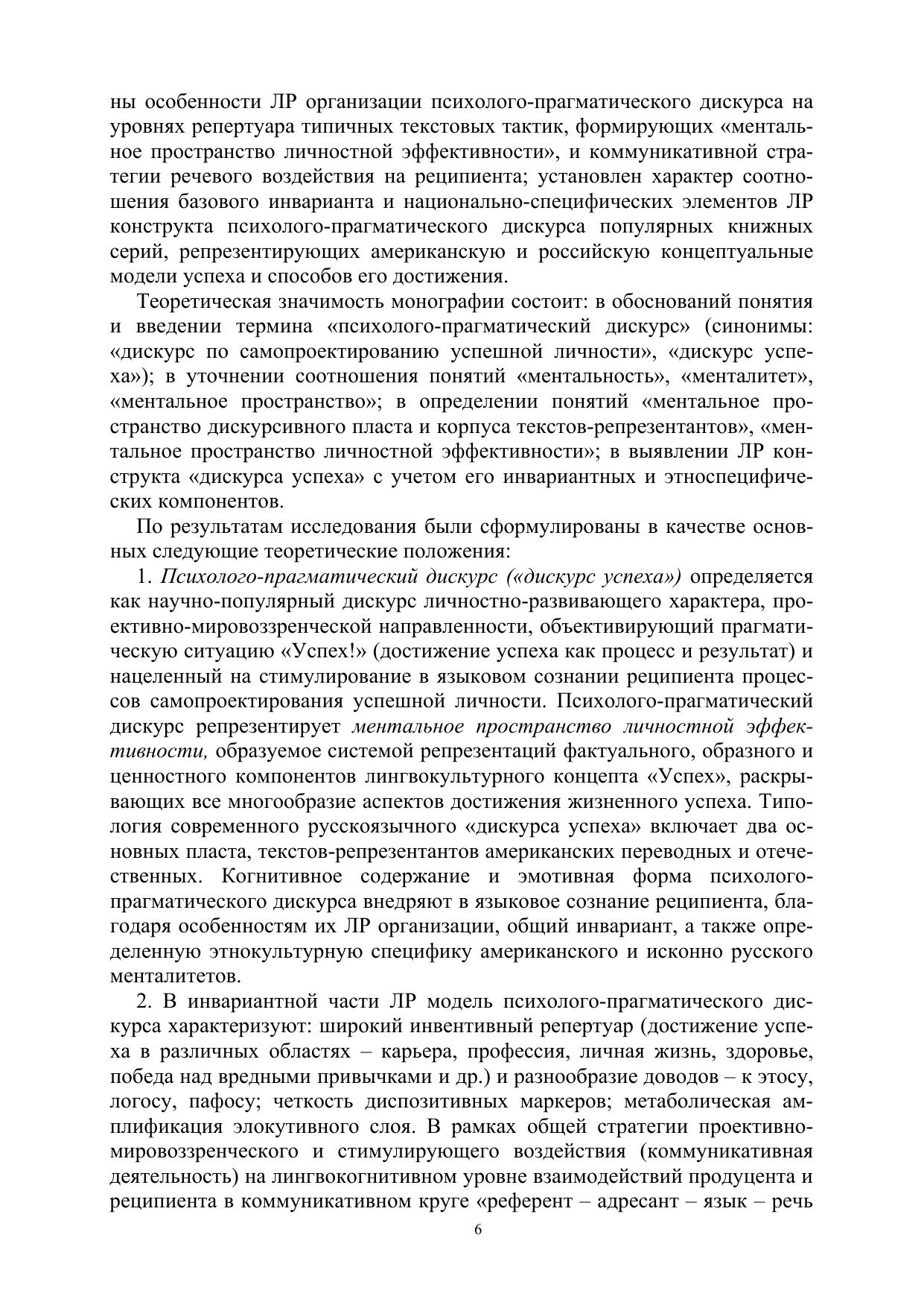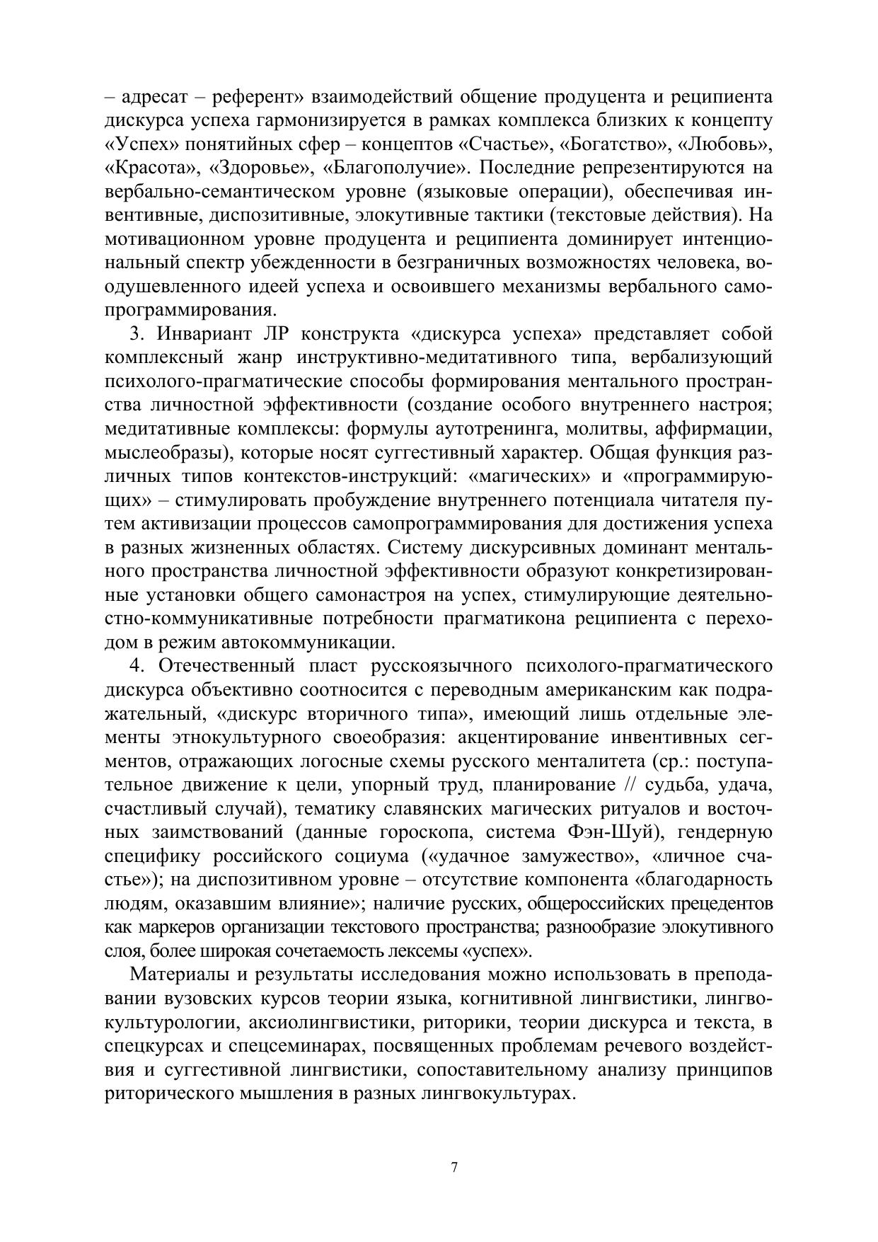 Изложены результаты исследования особого дискурсивного пласта – психолого-прагматического дискурса, или «дискурса успеха», которое выполнено в концептуальных рамках лингвориторической парадигмы как интегративного подхода в филологической науке. Эмпирическим материалом послужили тексты популярных американских переводных и российских книжных серий о достижении успеха, изданных в начале ХХI в. Адресуется специалистам-филологам, студентам, аспирантам, преподавателям гуманитарных дисциплин.