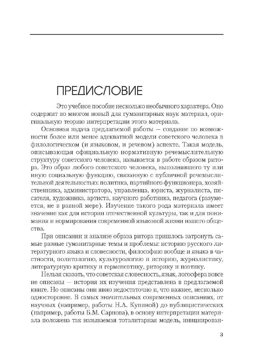 В пособии рассматривается модель, описывающая нормативную речемыслительную структуру советского человека — образ ритора. Это партийные функционеры, политики, управленцы, научные работники, писатели и многие другие. При анализе образа ритора разбираются проблемы истории и теории русского литературного языка и словесности, филологии, философии, политологии, культурологии, риторики и др.