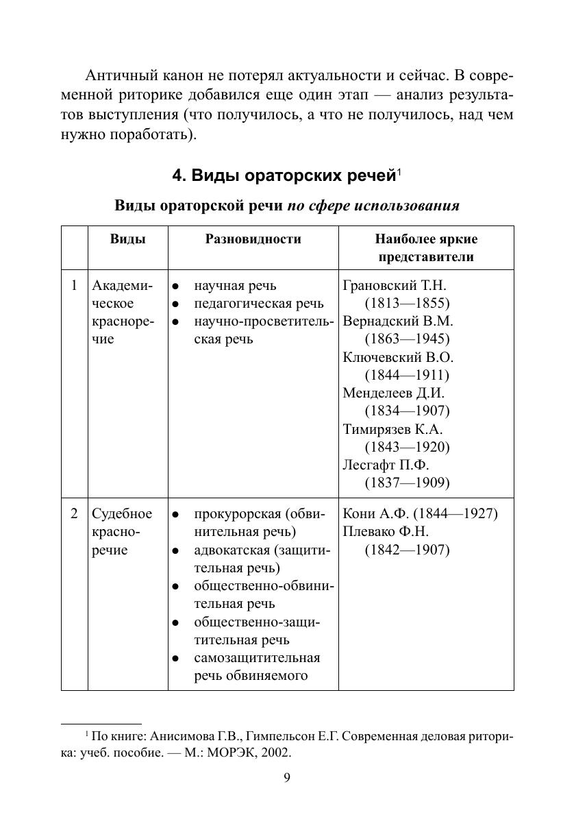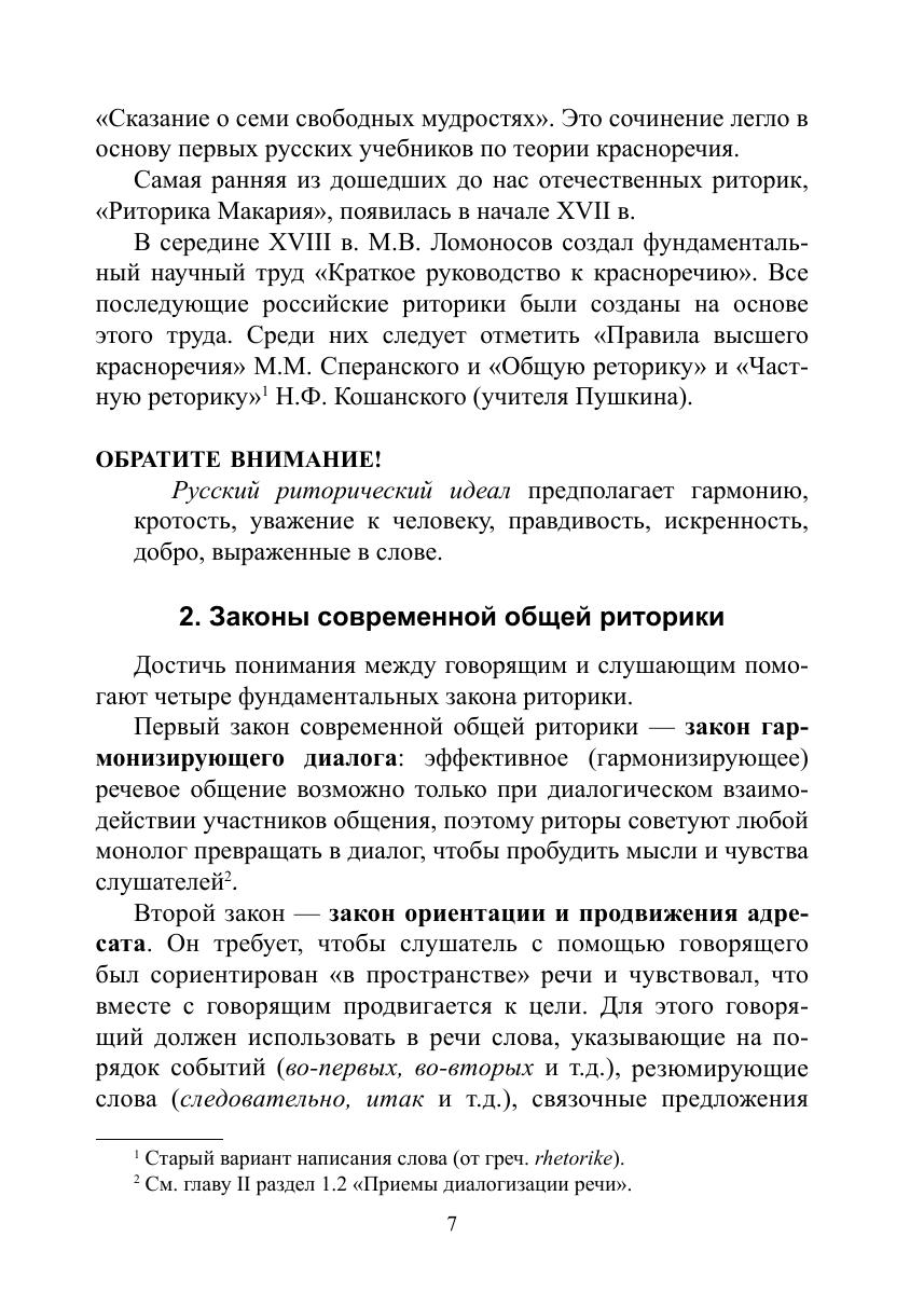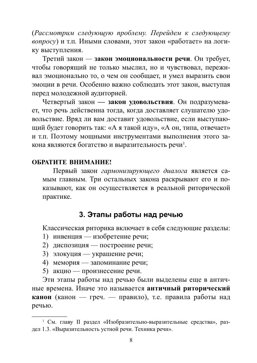 Цель пособия — научить студентов эффективному речевому воздействию, практическим риторическим навыкам, которые позволят им лучше владеть собственной речью и достигать успеха в будущей профессиональной деятельности. Пособие состоит из пяти глав; главы разбиваются на небольшие темы, что облегчает изучение и повторение материала; в конце каждой главы — задания на закрепление изученного материала. Пособие написано простым и доступным языком, теоретический материал минимизирован и для более четкого усвоения в основном представлен в таблицах. Пособие имеет практическую направленность, в нем содержатся конкретные рекомендации, как сделать речь выразительной и эмоциональной, как подготовиться к публичным выступлениям с информационной и убеждающей речью, как правильно построить умозаключения, как написать вступление и заключение к речи, как грамотно вести спор и т.д.