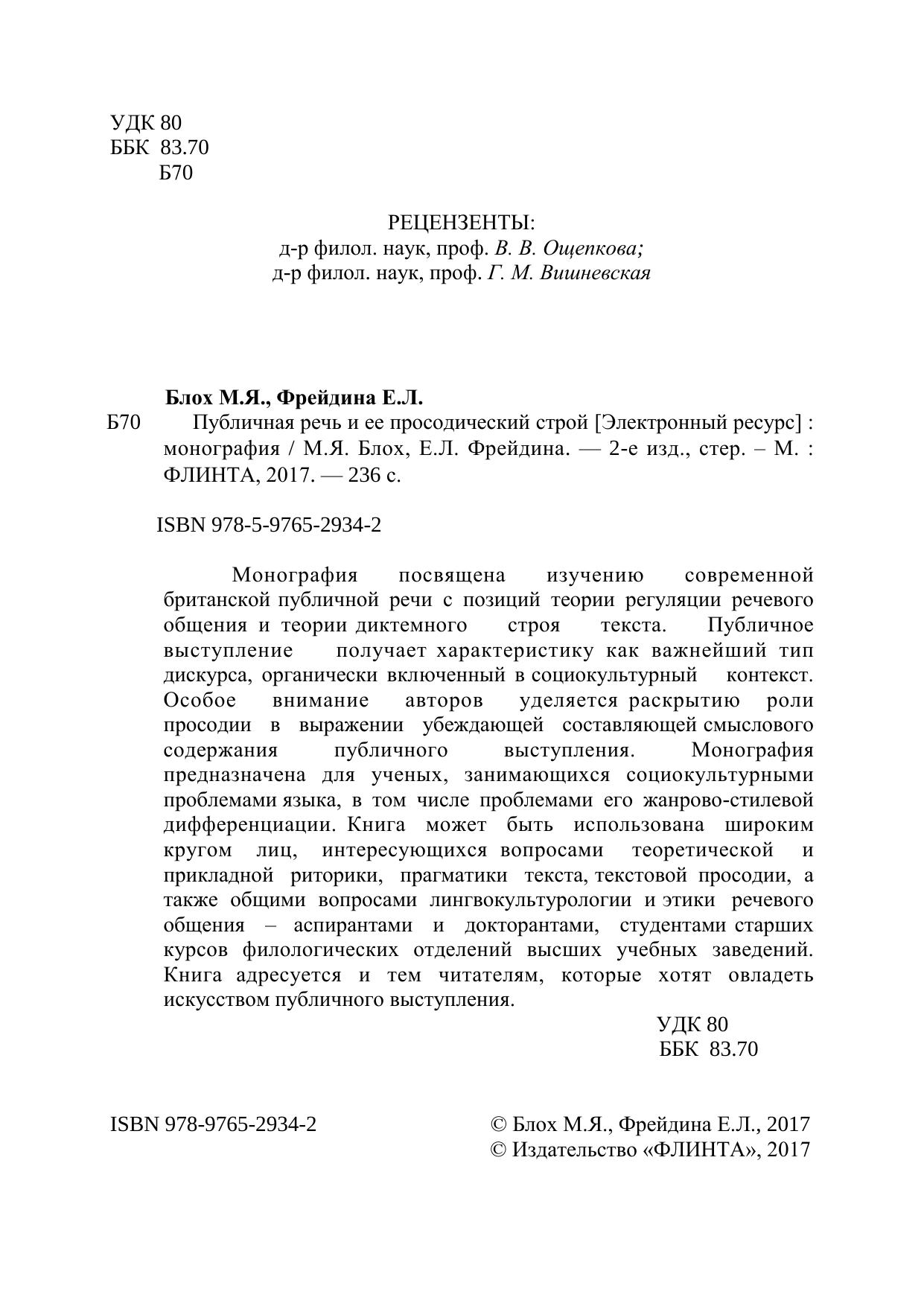 Монография посвящена изучению современной британской публичной речи с позиций теории регуляции речевого общения и теории диктемного строя текста. Публичное выступление получает характеристику как важнейший тип дискурса, органически включенный в социокультурный контекст. Особое внимание авторов уделяется раскрытию роли просодии в выражении убеждающей составляющей смыслового содержания публичного выступления. Монография предназначена для ученых, занимающихся социокультурными проблемами языка, в том числе проблемами его жанрово-стилевой дифференциации. Книга может быть использована широким кругом лиц, интересующихся вопросами теоретической и прикладной риторики, прагматики текста, текстовой просодии, а также общими вопросами лингвокультурологии и этики речевого общения – аспирантами и докторантами, студентами старших курсов филологических отделений высших учебных заведений. Книга адресуется и тем читателям, которые хотят овладеть искусством публичного выступления.