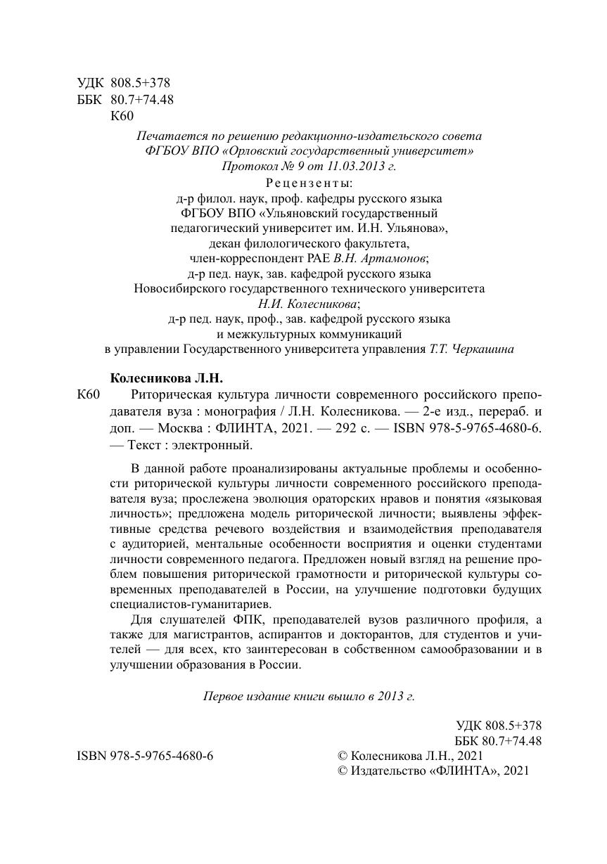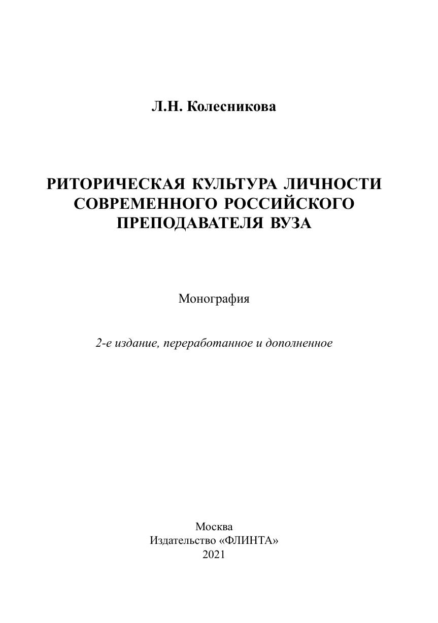 Риторическая культура личности современного российского преподавателя вуза
