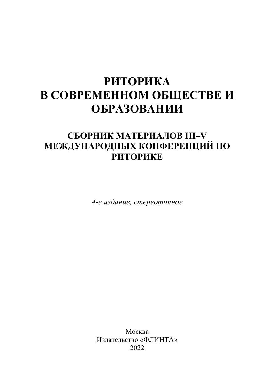 Риторика в современном обществе и образовании : сборник материалов III-V Международных конференций по риторике