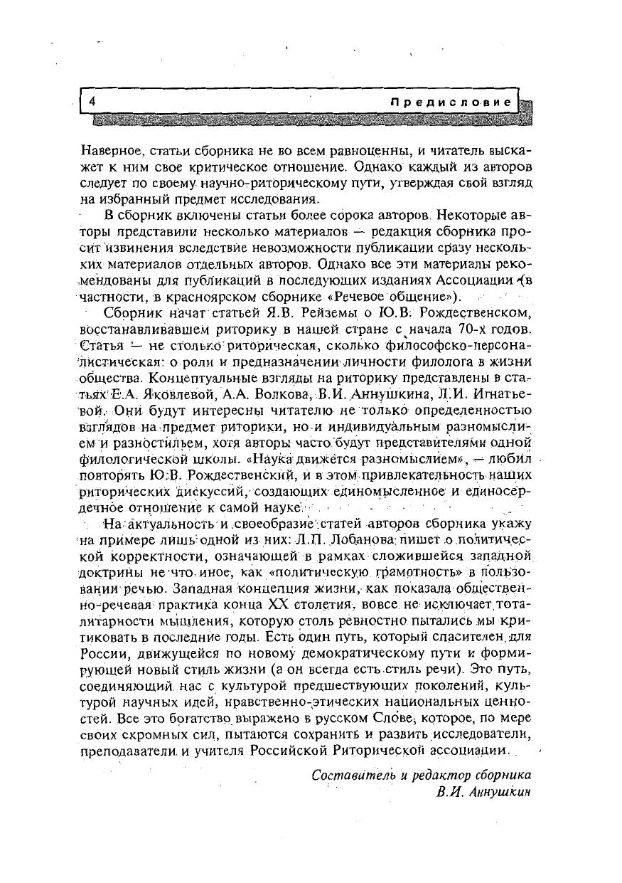 В предлагаемом читателю сборнике представлены тексты статей – докладов и выступлений участников III-V Международных конференций по риторике, организованных Российской Риторической ассоциацией. В докладах обсуждается широкий спектр вопросов, касающихся теории риторики и общественно-языковой практики, культуры современной речи и эффективных методов обучения целесообразной и убедительной речи.