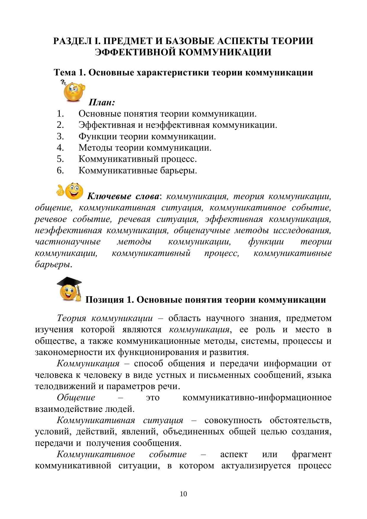 Создан и систематизирован материал по курсу «Технологии эффективных деловых и научных коммуникаций» в виде лекций, снабженных обобщающими таблицами и краткими схемами, удобными для восприятия, а также качественного освоения содержания дисциплины и быстрой подготовки к аттестации. Определены понятия «языковая, норма», «бизнес-коммуникация», «академическая коммуникация», рассмотрены их подвиды, учтены механизмы воздействия представленной информации на аудиторию. Даны практические советы и рекомендации по усвоению отдельных тем, использованию литературы, специальные приемы по компрессии материала и наглядные примеры.