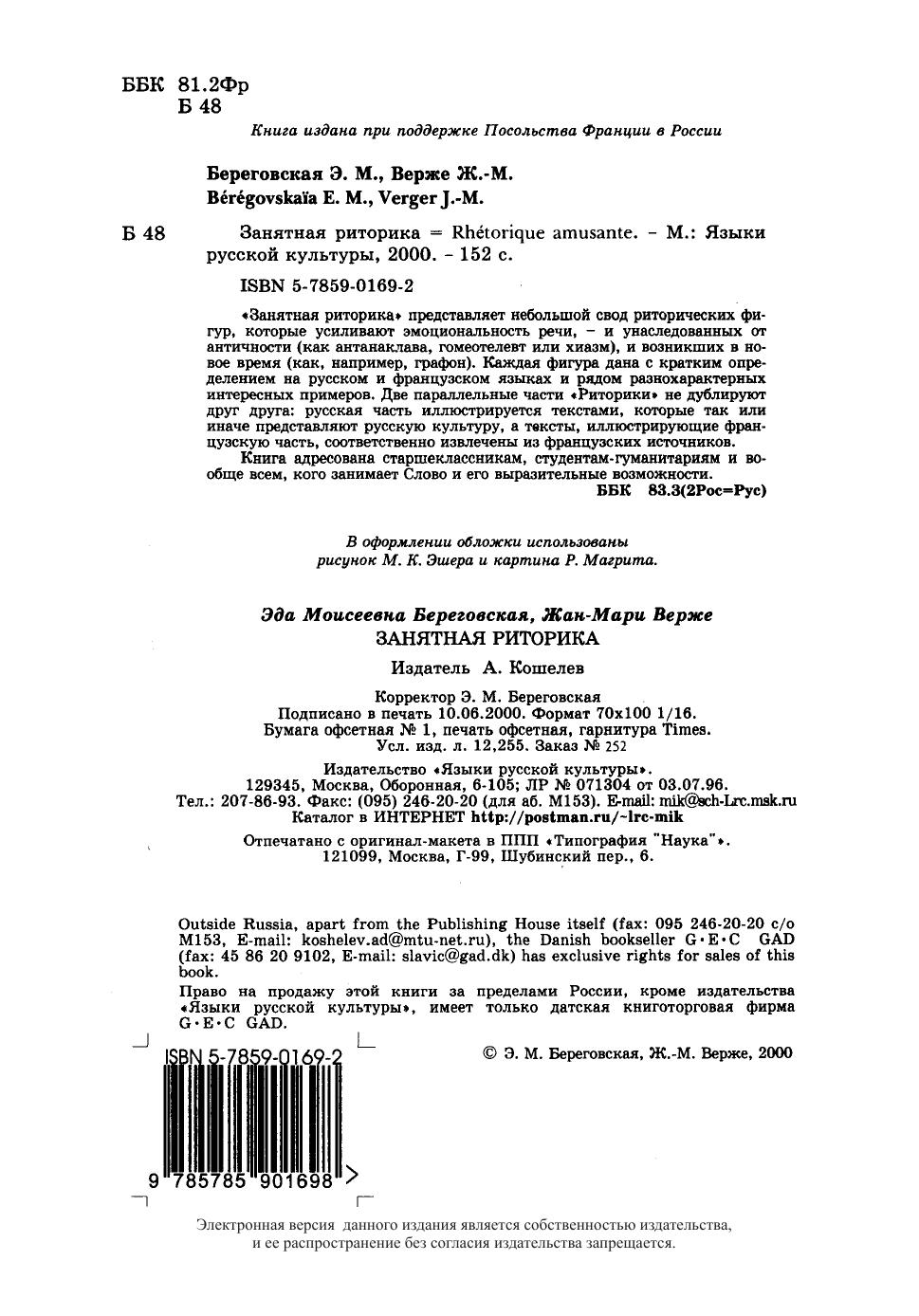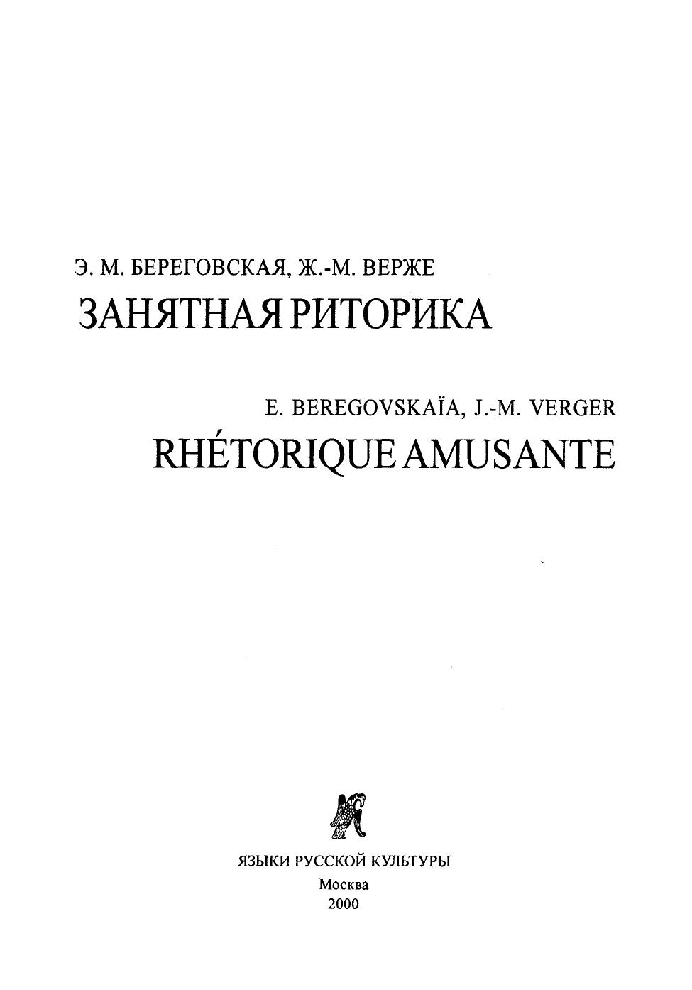 Авторы: Береговская Э. М., Верже Ж. -М.