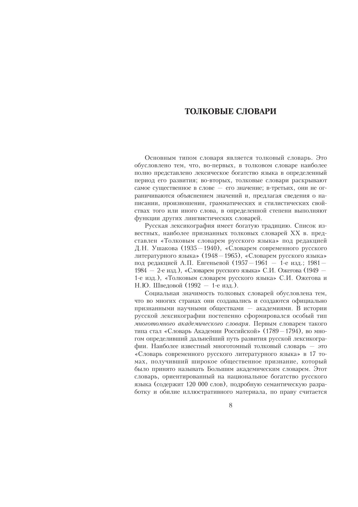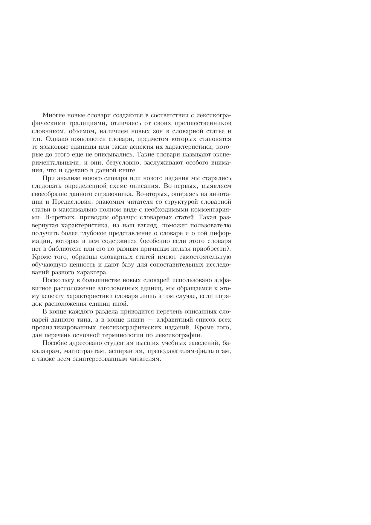 Цель пособия — познакомить читателя с новыми словарями, увидившими свет в XXI веке, а также с уже известными лексикографическими справочниками, переизданными в настоящее время и исправленном и дополненном виде. Особое внимание уделялось тем словарям, которые еще подробно не описывались. Попутно осуществлялось сопоставление различных словарей одного типа или разных редакций одного словаря. В конце пособия приводится алфавитный список всех проанализированных лексикографических изданий и дается перечень основной терминологии по лексикографии. Для студентов вузов, бакалавров, магистров, аспирантов, преподавателей-филологов, а также всех заинтересованных читателей.