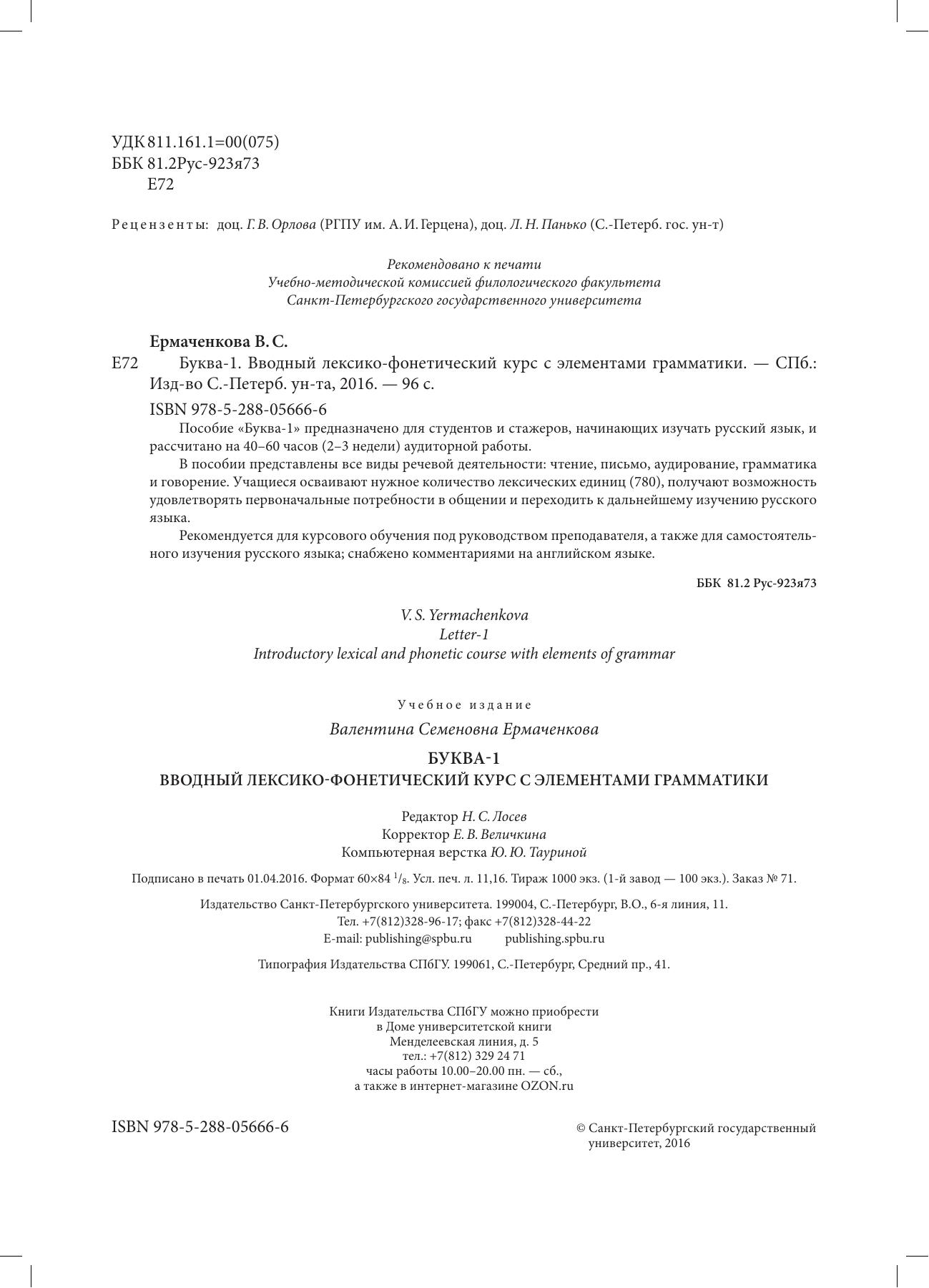 Пособие «Буква-1» предназначено для студентов и стажеров, начинающих изучать русский язык, и рассчитано на 40–60 часов (2–3 недели) аудиторной работы.