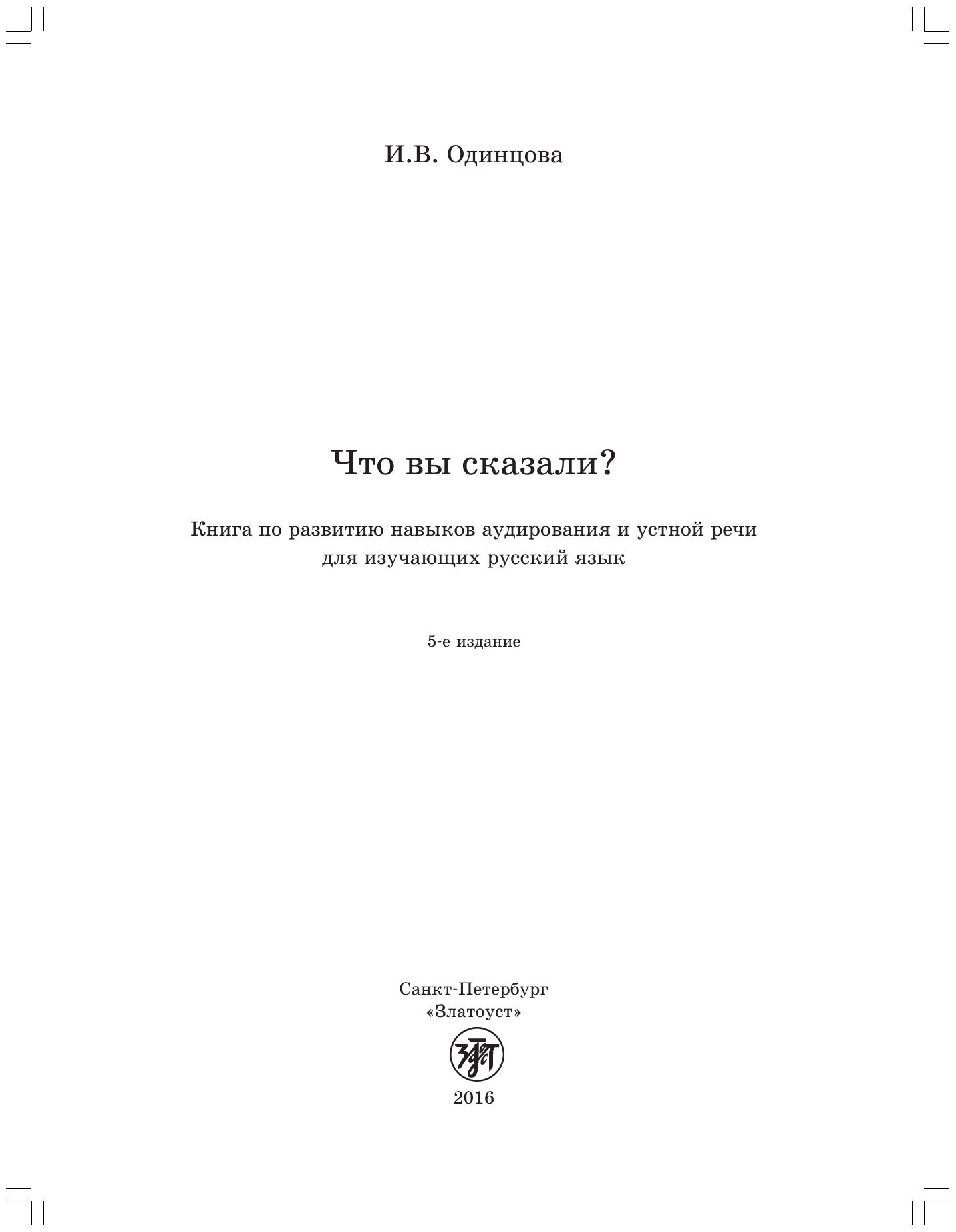 Что вы сказали? Книга по развитию навыков аудирования и устной речи для изучающих русский язык