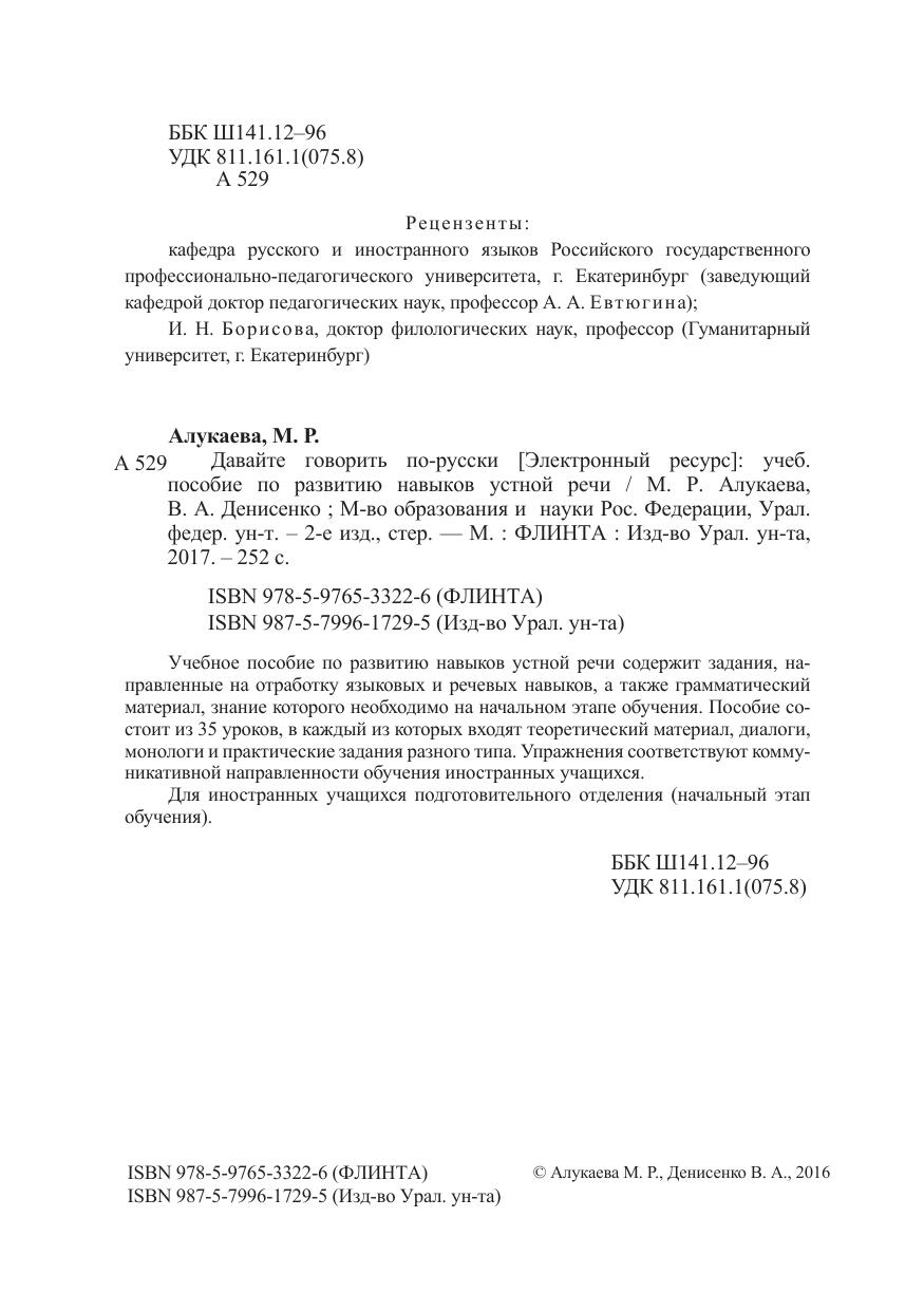 Учебное пособие по развитию навыков устной речи содержит задания, направленные на отработку языковых и речевых навыков, а также грамматический материал, знание которого необходимо на начальном этапе обучения. Пособие состоит из 35 уроков, в каждый из которых входят теоретический материал, диалоги, монологи и практические задания разного типа. Упражнения соответствуют коммуникативной направленности обучения иностранных учащихся. Для иностранных учащихся подготовительного отделения (начальный этап обучения).