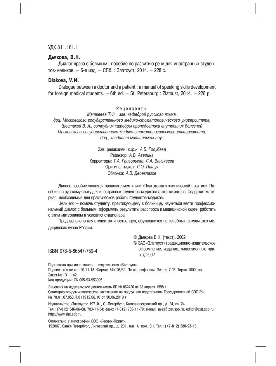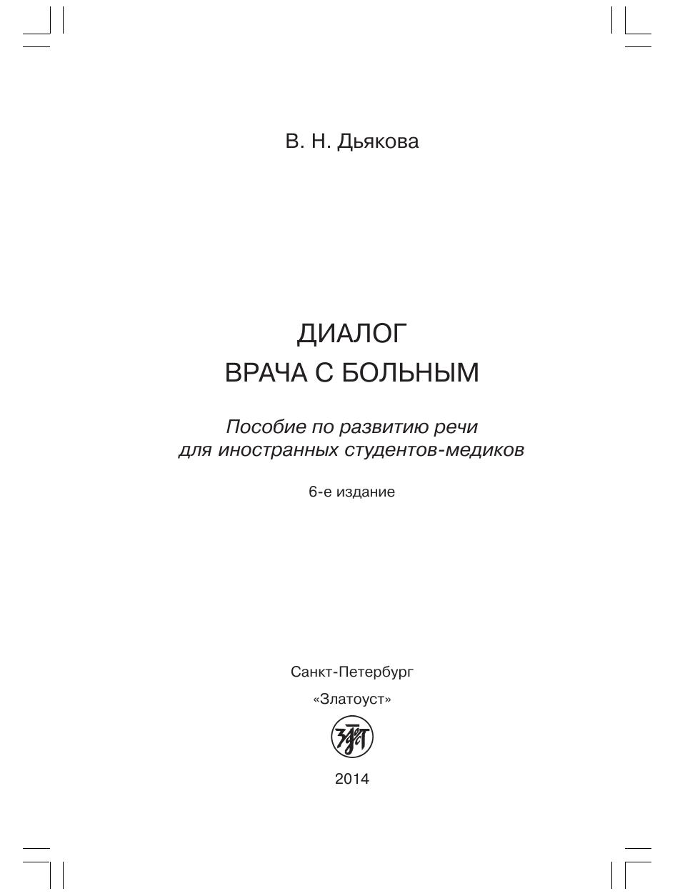 Диалог врача с больным: пособие по развитию речи для иностранных студентов-медиков
