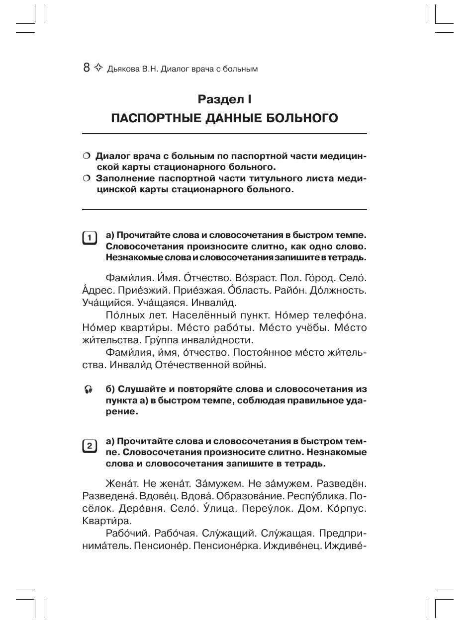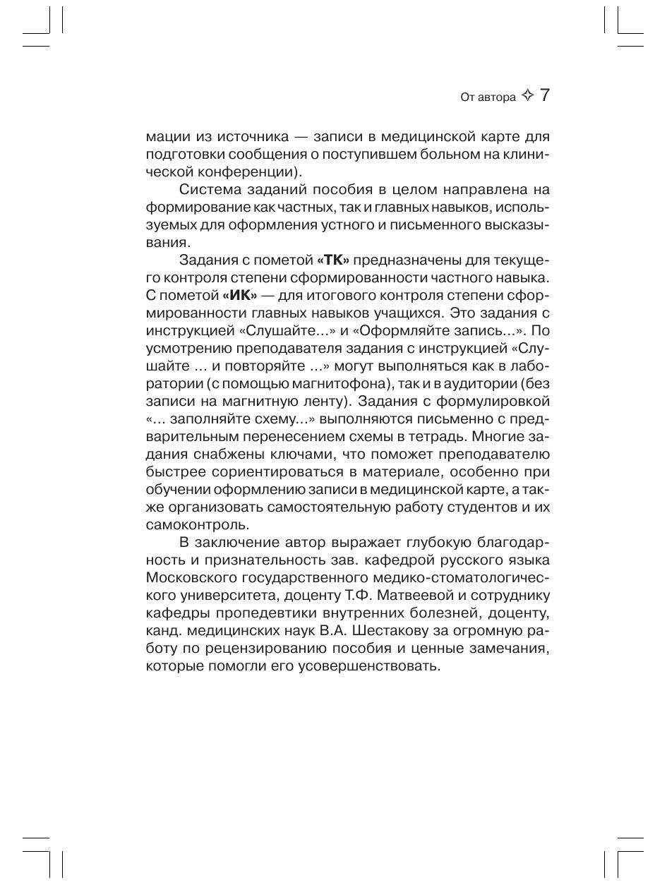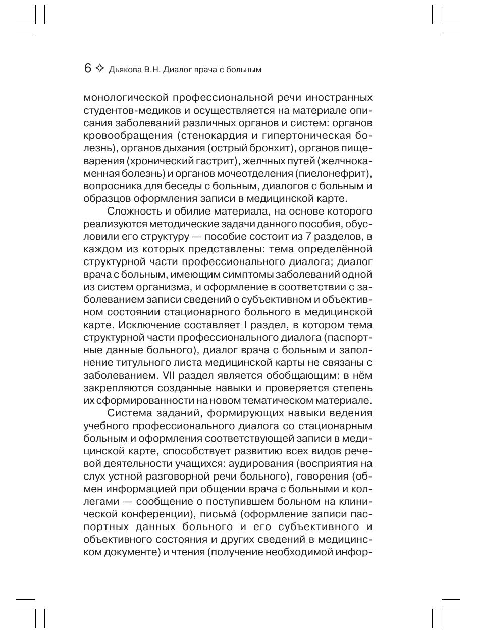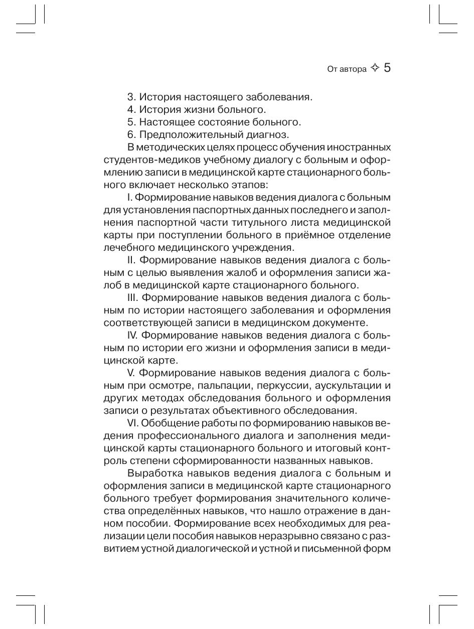 Данное пособие является продолжением книги «Подготовка к клинической практике. Пособие по русскому языку для иностранных студентов-медиков» этого же автора. Содержит материал, необходимый для практической работы студентов-медиков.Цель его — помочь студенту, практикующему в больнице, научиться вести профессиональный диалог с больным, оформлять результаты расспроса в медицинской карте, работать с этим материалом в условиях стационара. Предназначено для студентов-иностранцев, обучающихся на лечебных факультетах медицинских вузов России
