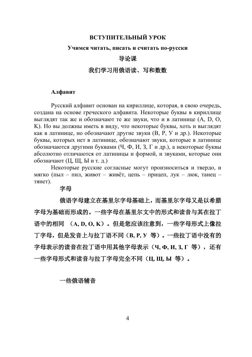 Учебное пособие предназначено для обучения русскому языку как иностранному на начальном этапе. Содержит введение, вступительный урок, 20 основных уроков, включающих диалоги, тексты, грамматический материал и упражнения по грамматике и развитию речи, грамматические таблицы, а также ключи к упражнениям. Адресовано учащимся, говорящим на китайском языке.