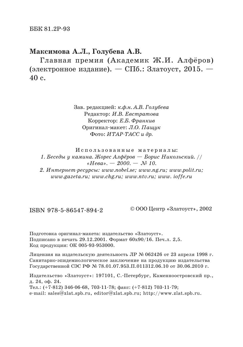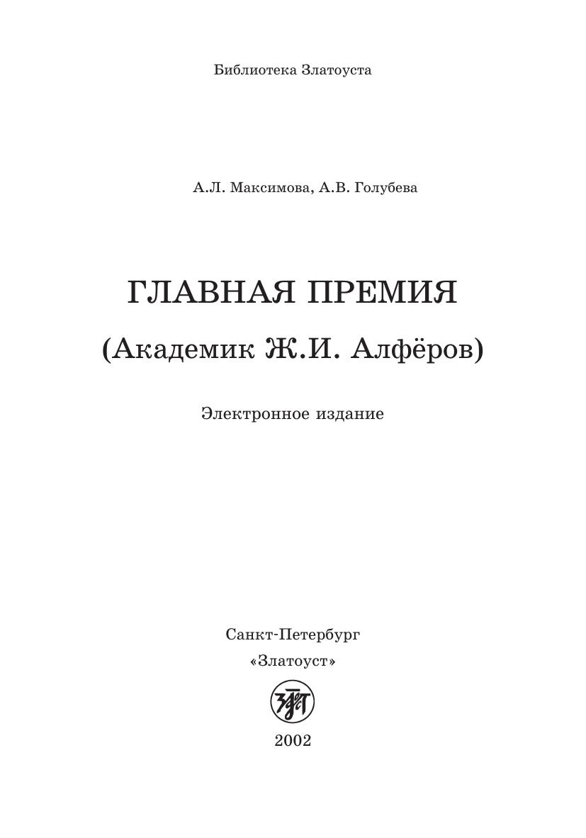 Главная премия (Академик Ж.И. Алфёров)