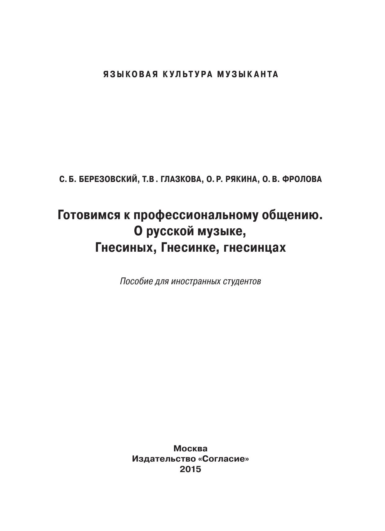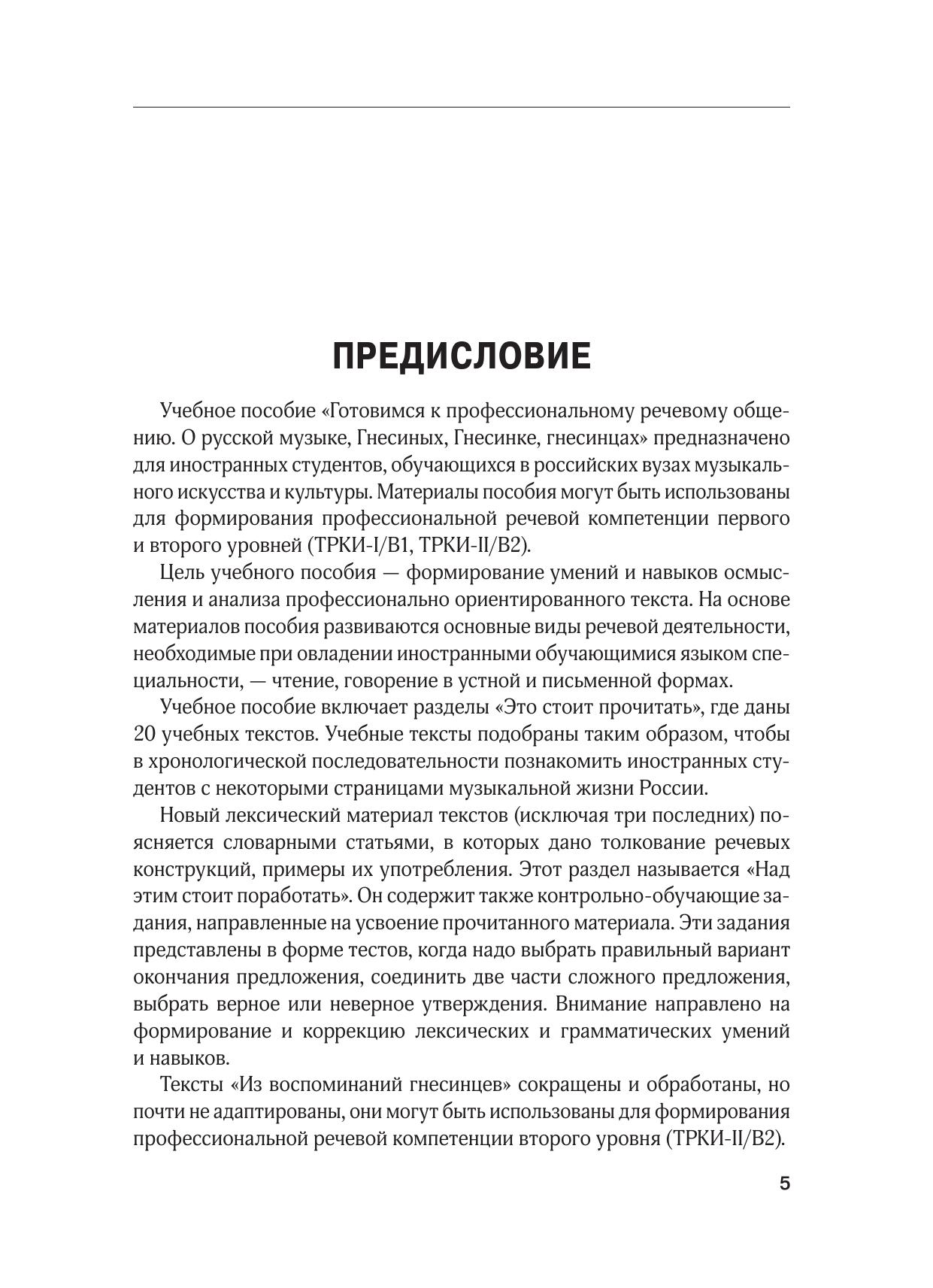 Готовимся к профессиональному общению. О русской музыке, Гнесиных, Гнесинке, гнесинцах. Учебное пособие для иностранных студентов