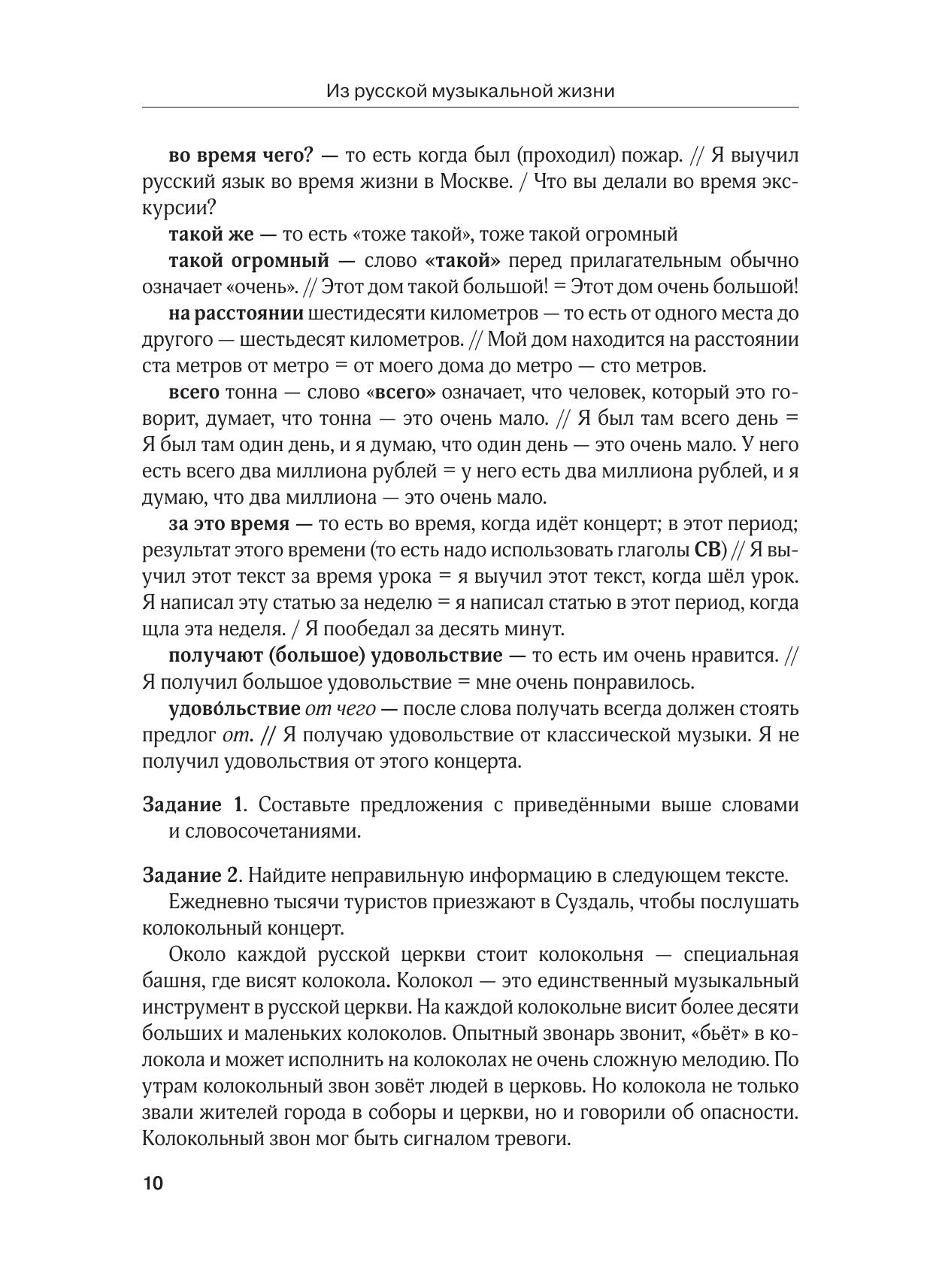 Пособие содержит адаптированные тексты о истории русской музыки, русских композиторах. К текстам даны толкования слов и словосочетаний, а также контрольно-обучающие задания для развития коммуникативной компетенции в области профессионального общения.