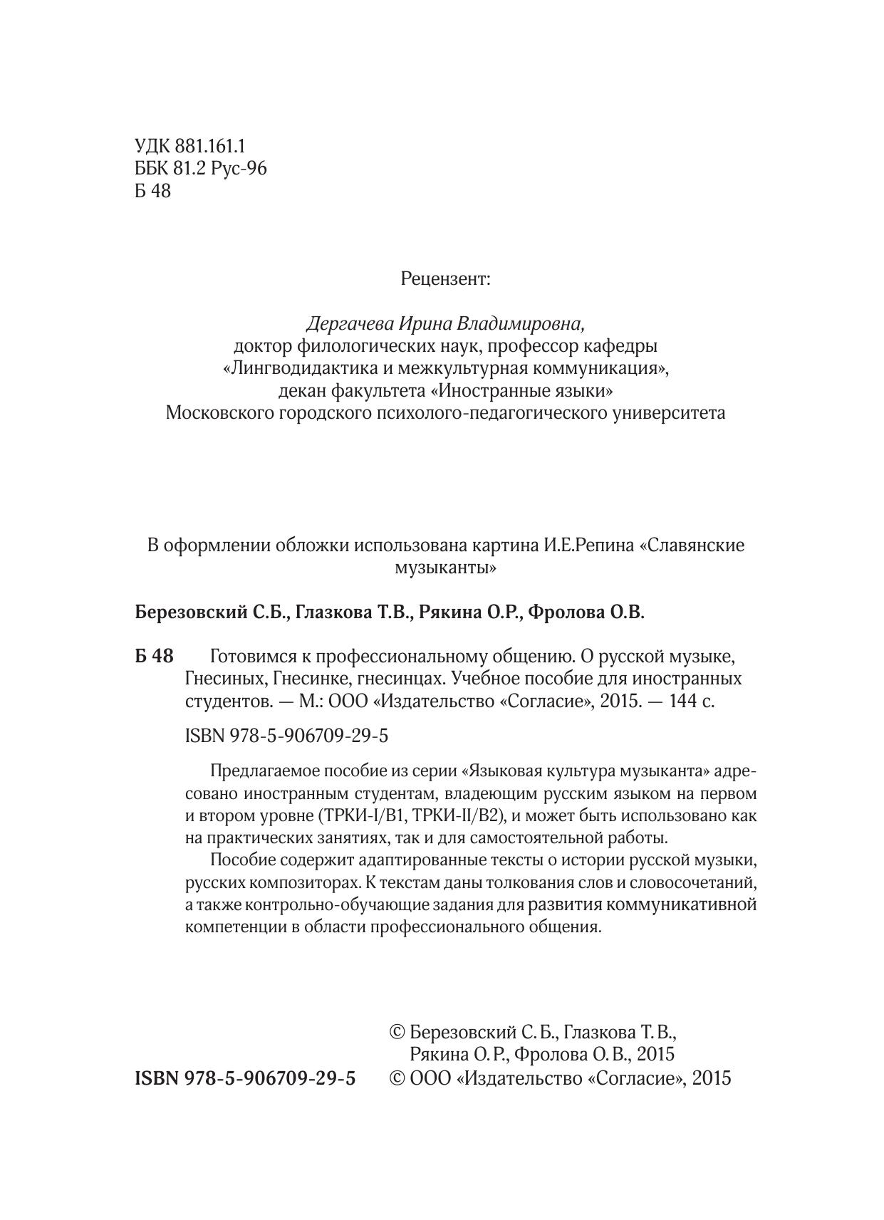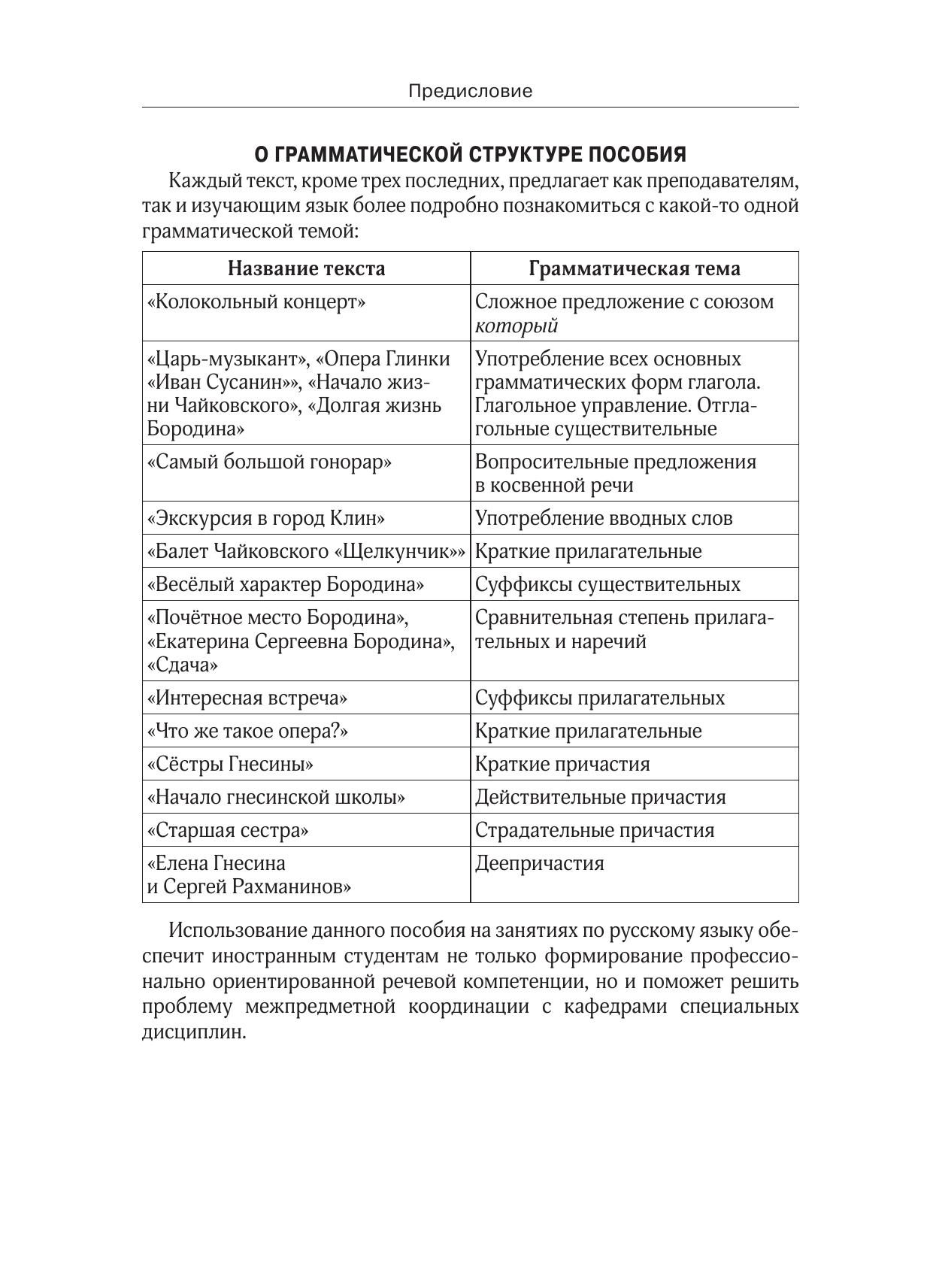 Предлагаемое пособие из серии «Языковая культура музыканта» адресовано иностранным студентам, владеющим русским языком на первом и втором уровне (ТРКИ-I/В1, ТРКИ-II/B2), и может быть использовано как на практических занятиях, так и для самостоятельной работы.