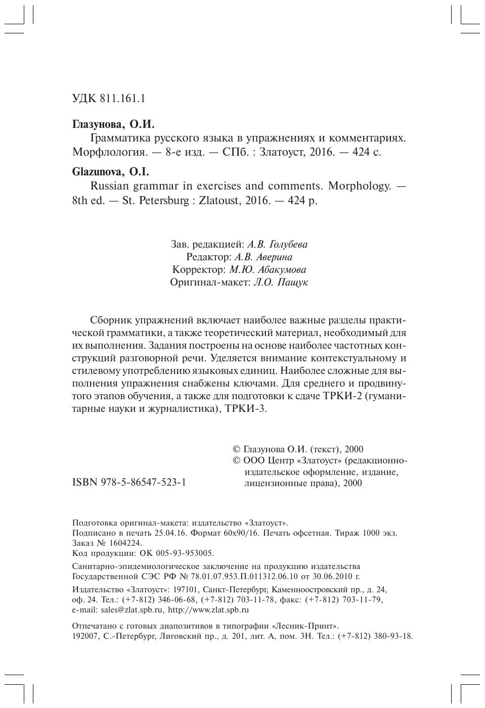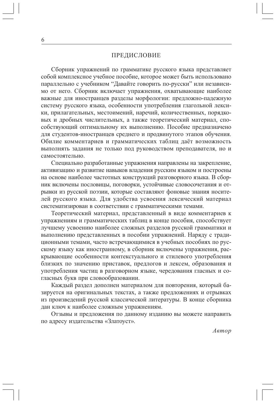 Сборник упражнений включает наиболее важные разделы практической грамматики, а также теоретический материал, необходимый для их выполнения. Задания построены на основе наиболее частотных конструкций разговорной речи. Уделяется внимание контекстуальному и стилевому употреблению языковых единиц. Наиболее сложные для выполнения упражнения снабжены ключами. Для среднего и продвинутого этапов обучения, а также для подготовки к сдаче ТРКИ"2 (гуманитарные науки и журналистика), ТРКИ"3.