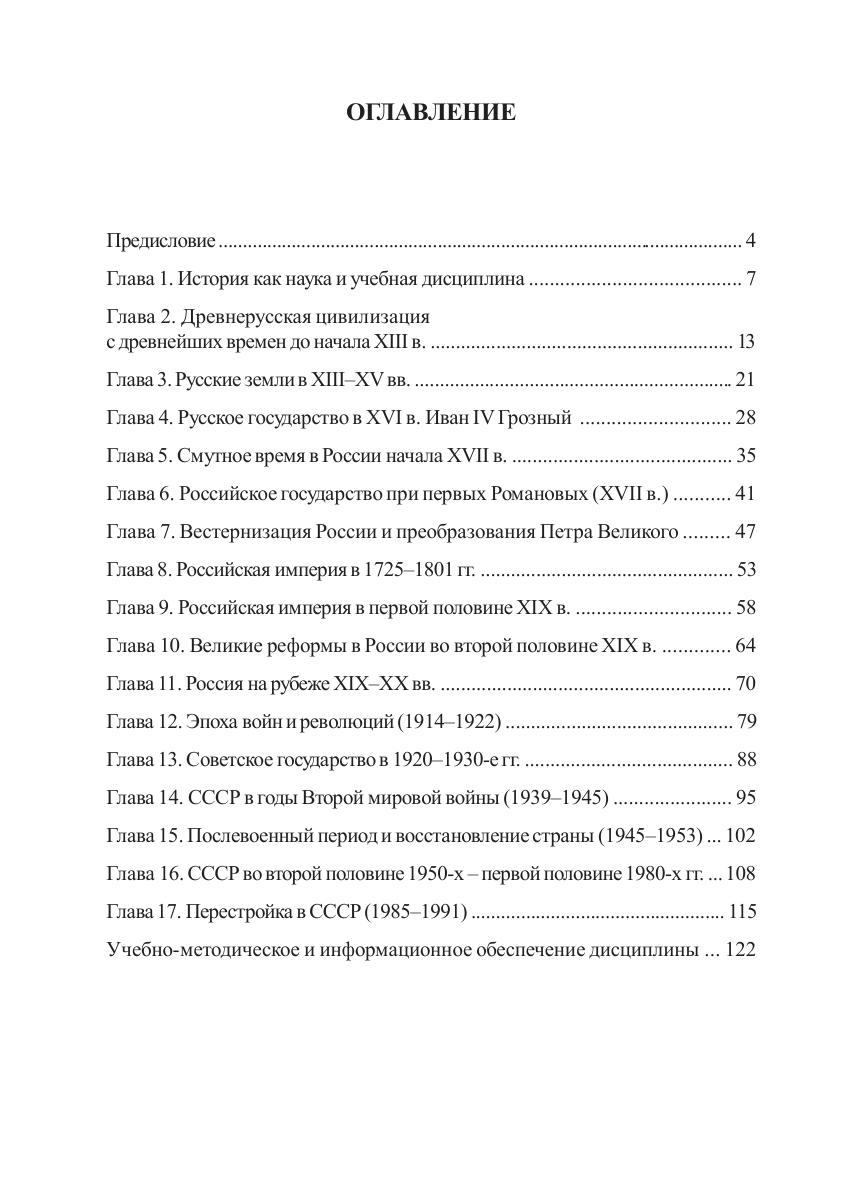 В учебном пособии представлены конспекты основных разделов курса, ключевые термины и понятия по каждой теме, вопросы, рекомендуемые к обсуждению на семинарских занятиях. Приведены также учебники и учебные пособия, рекомендуемые для изучения курса и подготовки к итоговой аттестации. Для студентов из дальнего и ближнего зарубежья, не изучавших до этого историю России и обучающихся по программам бакалавриата и специалитета по техническим, естественнонаучным и социально-экономическим направлениям подготовки и специальностям.