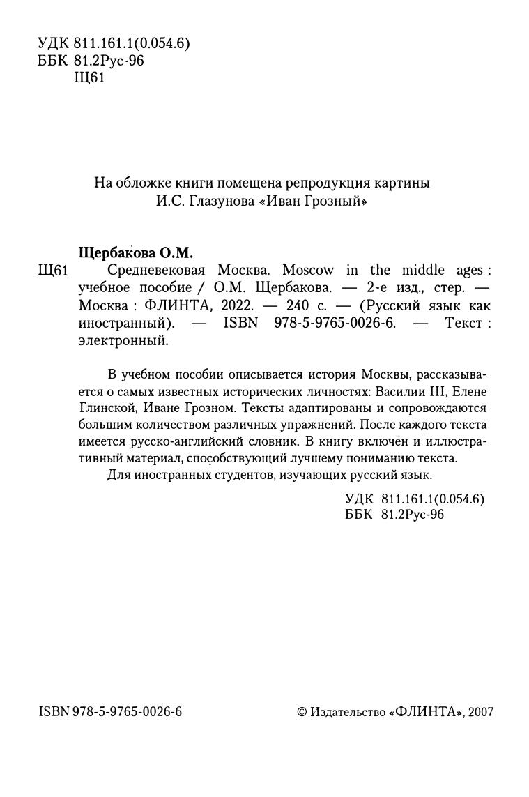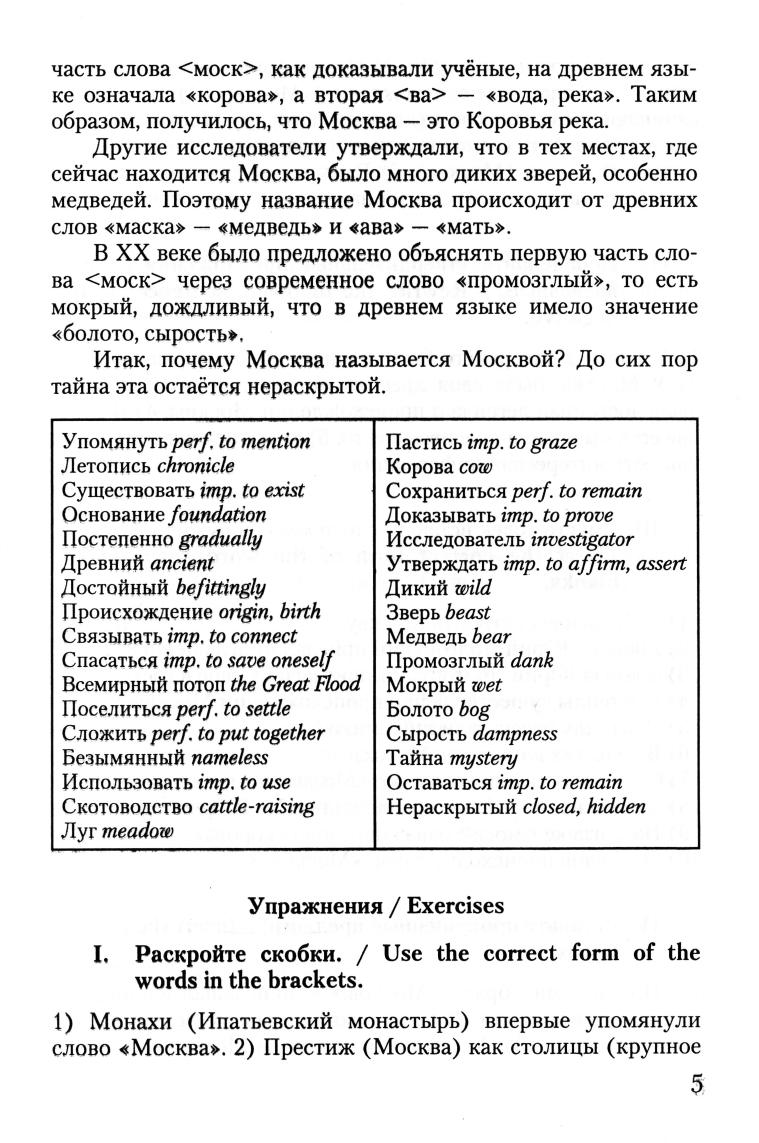 В учебном пособии описывается история Москвы, рассказывается о самых известных исторических личностях: Василии III, Елене Глинской, Иване Грозном. Тексты адаптированы и сопровождаются большим количеством различных упражнений. После каждого текста имеется русско-английский словник. В книгу включён и иллюстративный материал, спщ:обствующий лучшему пониманию текста.