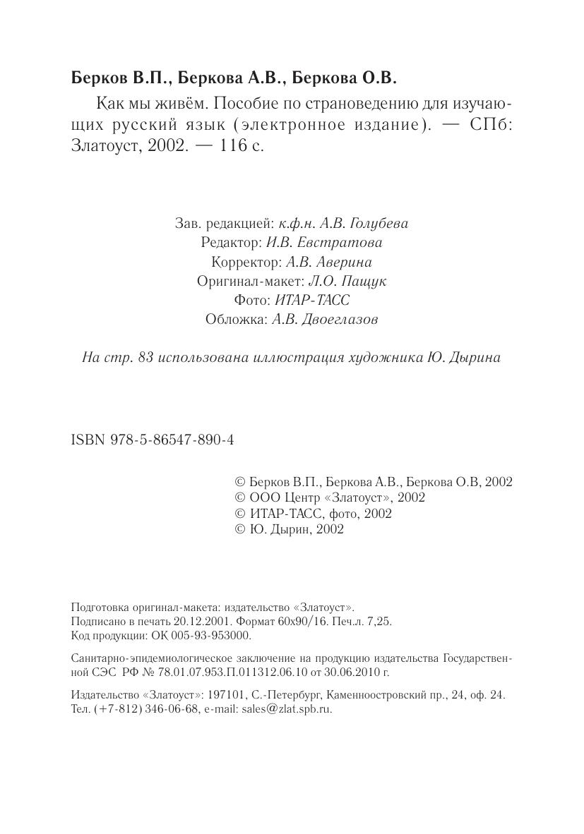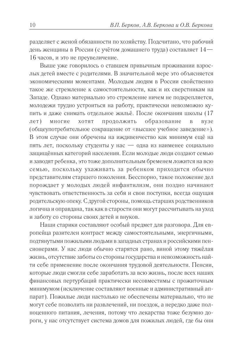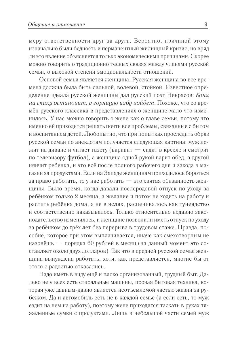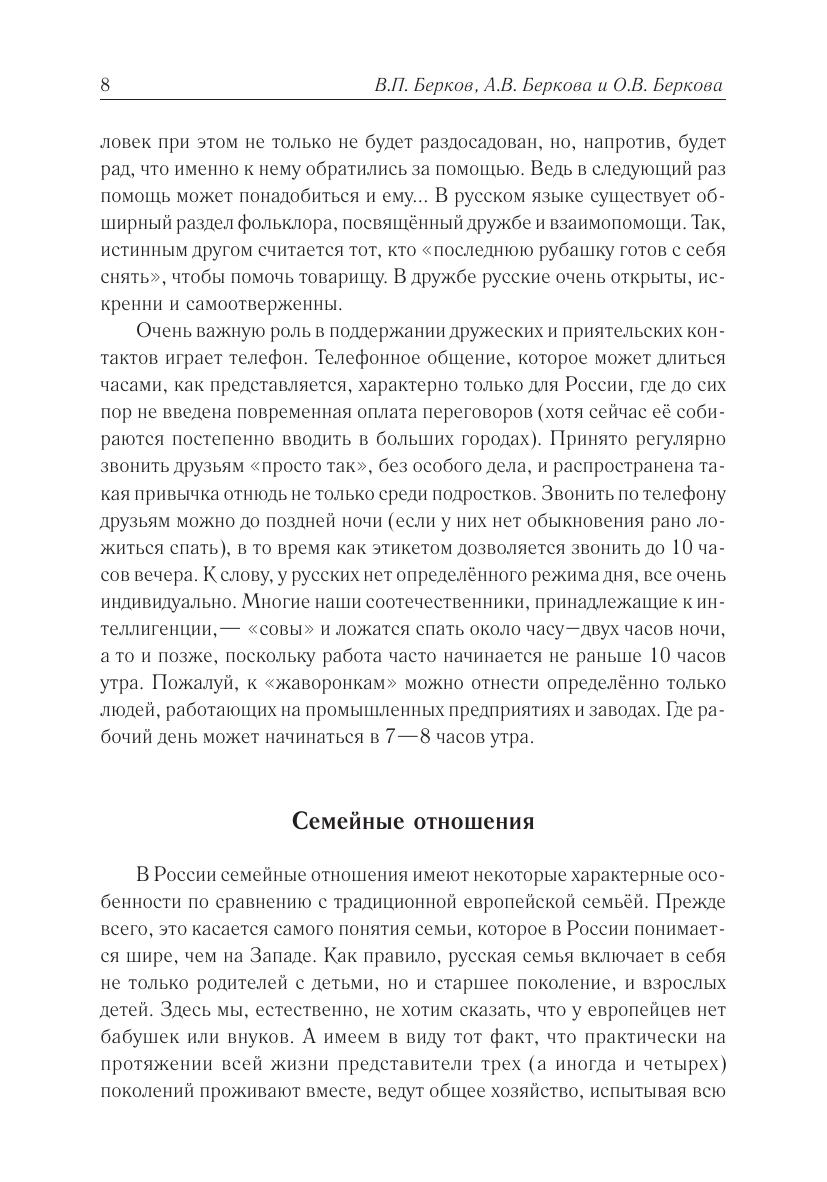 Эта книга предназначена для тех, кто изучает русский язык. Как хорошо известно, для того чтобы понимать иностранные тексты, надо, помимо языковых знаний, обладать знаниями о специфике страны этого языка. Именно эту цель и преследует данное пособие — сообщить читателю некоторые важные сведения о жизни россиян. В этом пособии, кроме собственно страноведческих сведений, даются также некоторые советы тем, кто собирается отправиться в Россию.Авторы старались описывать современную российскую действительность максимально объективно, не скрывая тех негативных явлений, которых, к сожалению, ещё немало в России. Писать об этом им было неприятно, но от идеализации жизни на их многострадальной родине пользы читателю не было бы. Однако они уверены, что хорошего здесь во много раз больше, чем плохого, о чем и рассказывается в книге. Ну а плохое — оно рано или поздно уйдет. Авторы стремились к тому, чтобы язык книги, с одной стороны, был максимально естественным, т. е. сознательно не упрощали его. С другой стороны, они старались избегать усложнённых синтаксических конструкций и редких слов. Авторы рассматривают эту книгу как первый выпуск из серии, которую они надеются продолжить в дальнейшем.