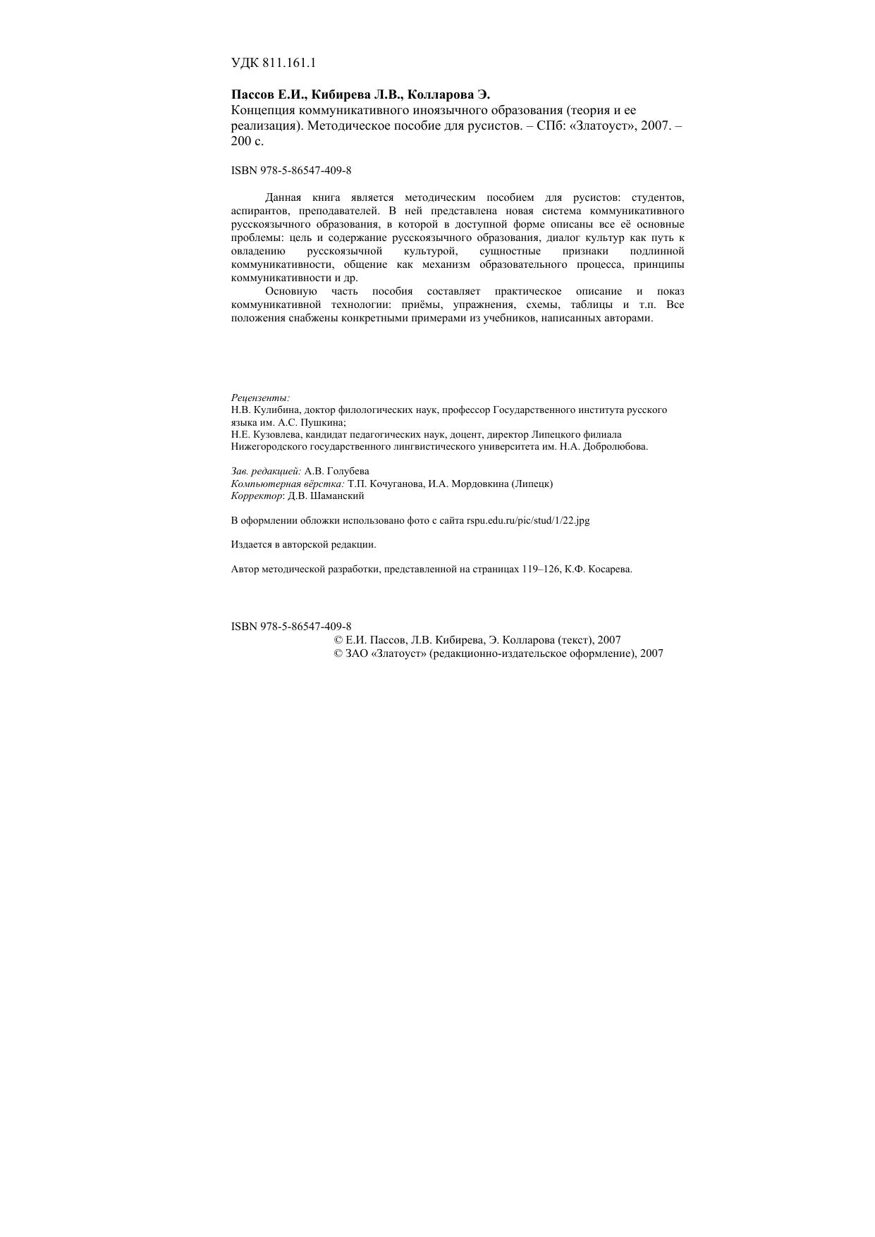 Авторы: Пассов Е.И., Кибирева Л.В., Колларова Э.