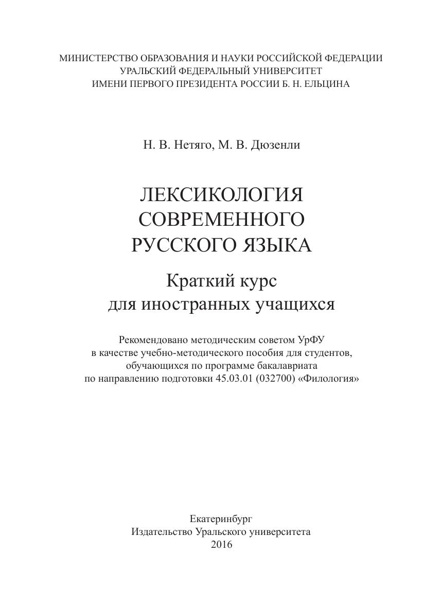 Лексикология современного русского языка : Краткий курс для иностранных учащихся: учеб.-метод. пособие