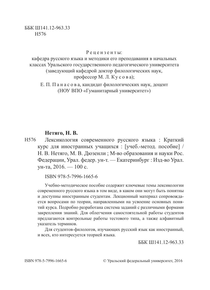 Учебно-методическое пособие содержит ключевые темы лексикологии современного русского языка в том виде, в каком они могут быть понятны и доступны иностранным студентам. Лекционный материал сопровождается вопросами по теории, направленными на усвоение основных понятий курса. Подробно разработана система заданий с различными формами закрепления знаний. Для облегчения самостоятельной работы студентов предлагаются контрольные работы тестового типа, а также алфавитный указатель терминов. Для студентов-филологов, изучающих русский язык как иностранный, и всех, кто интересуется теорией языка.
