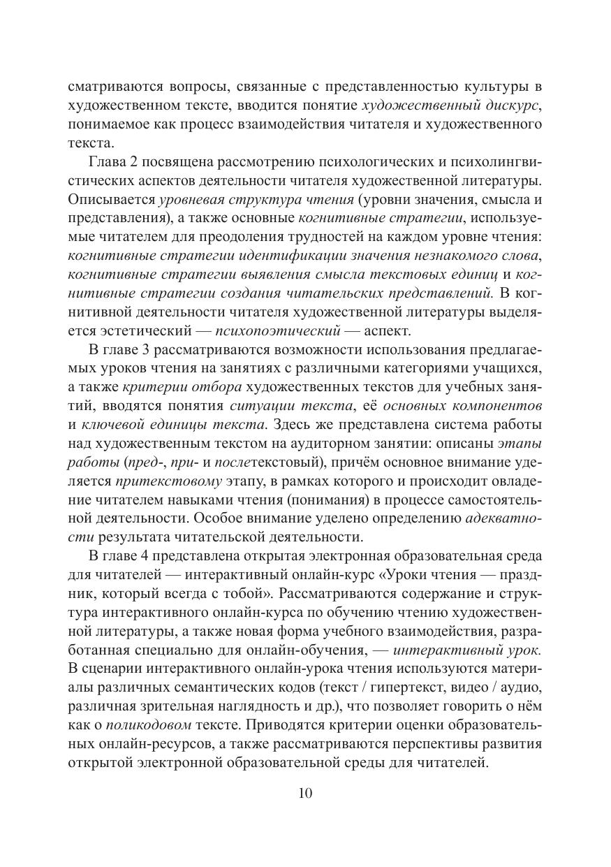В монографии представлена авторская методика обучения чтению (пониманию) художественной литературы на очных занятиях и в цифровой среде. Понимание рассматривается как один из важнейших аспектов владения языком. Монография содержит не только теоретический материал (филологические, психологические / психолингвистические и методические основы обучения пониманию художественных текстов), но и методические рекомендации по внедрению научных положений в учебный процесс, а также большое число примеров (иллюстраций) из письменных и поликодовых сценариев уроков чтения.