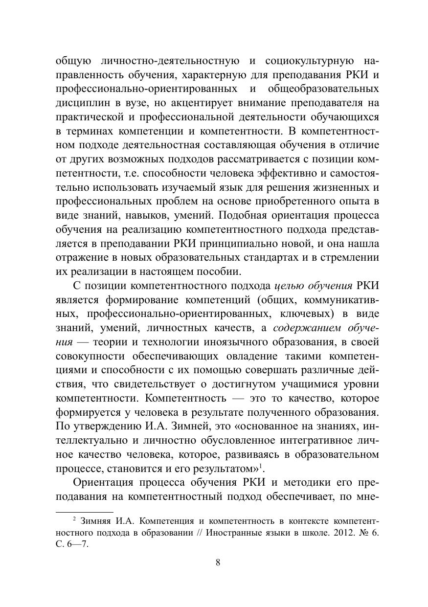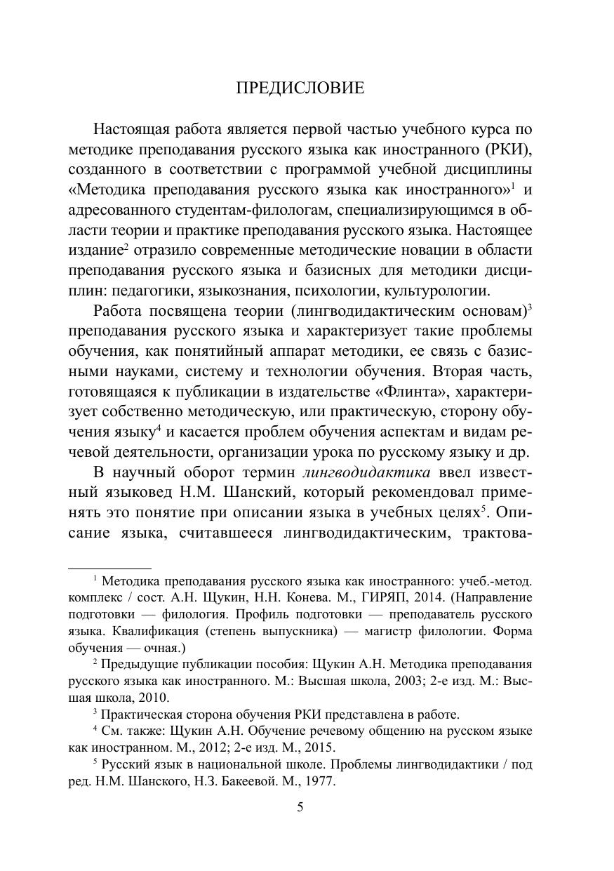 В пособии рассматриваются основные проблемы теории и практики обучения русскому языку как иностранному в условиях высшей школы. В нем обобщен современный опыт преподавания курса «Методика преподавания русского языка как иностранного» студентам-филологам, специализирующимся в области преподавания русского языка, с позиции закона «Об образовании в Российской Федерации» (2012), новых стандартов высшего образования 3-го поколения (ФГОС-3, 2013) и компетентностного подхода к образованию, реализующего концепцию нового стандарта. В пособии сделан акцент на овладение методикой преподавания языка в тесном взаимодействии с иноязычной культурой, формировании в процессе обучения языку коммуникативной компетенции и компетентности учащихся в раз- личных областях знания в контексте диалога культур.