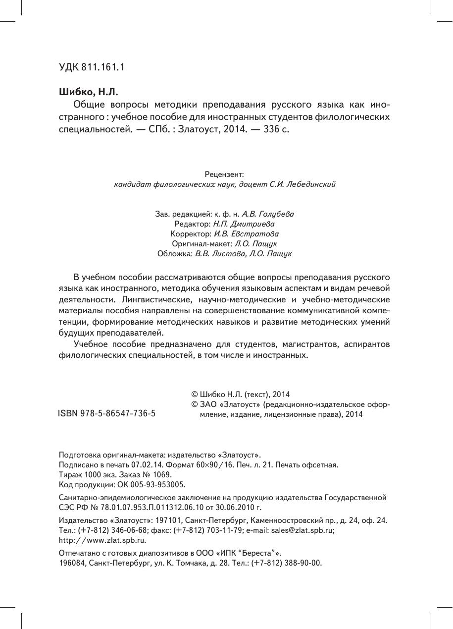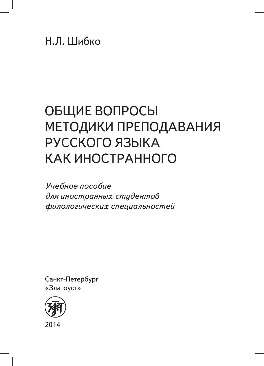 Общие вопросы методики преподавания русского языка как иностранного : учебное пособие для иностранных студентов филологических специальностей