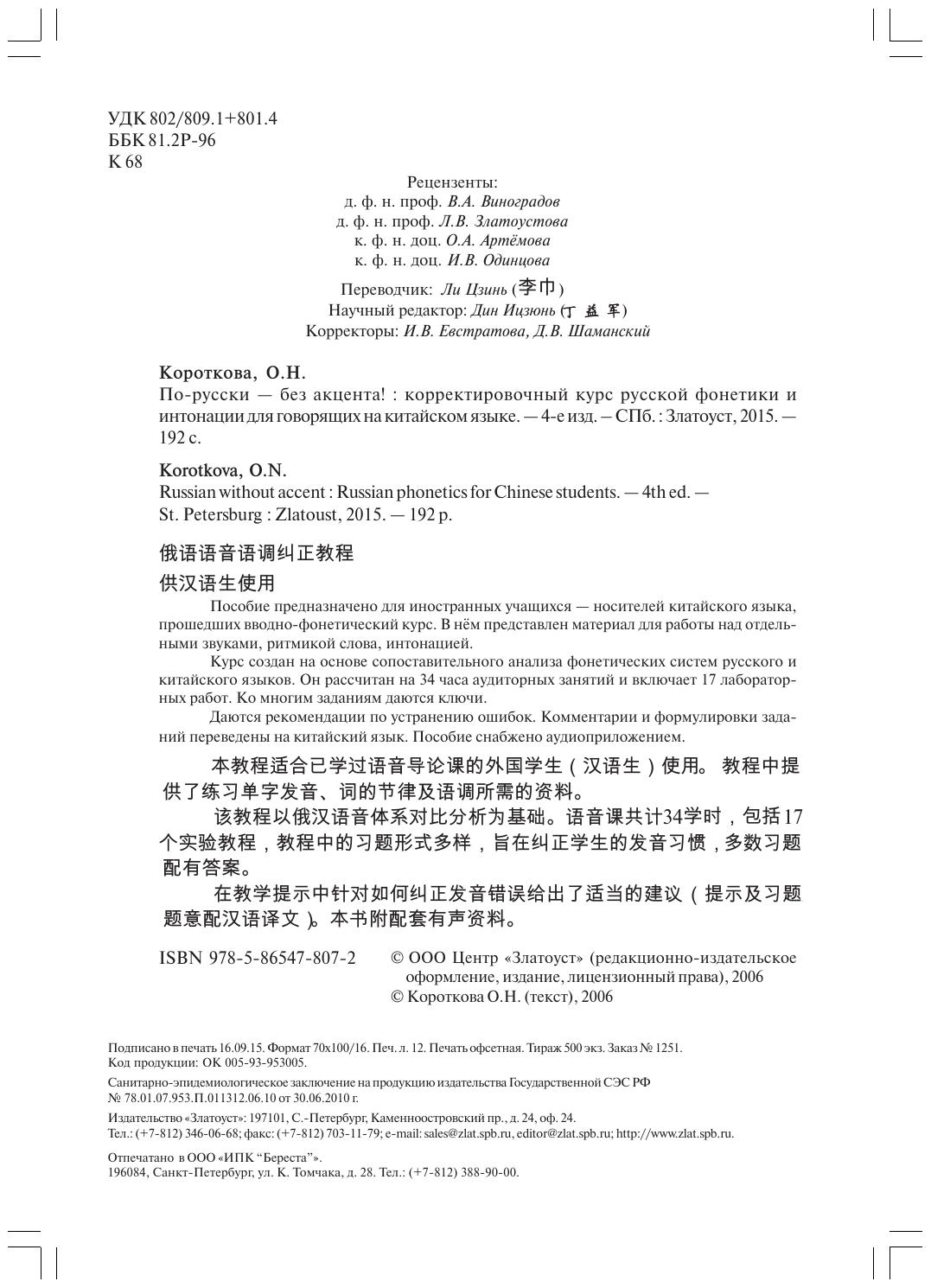 По-русски — без акцента! Корректировочный курс русской фонетики и интонации для говорящих на китайском языке