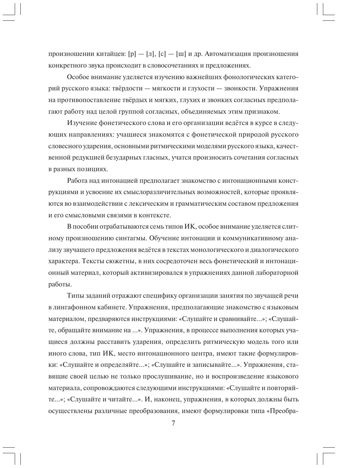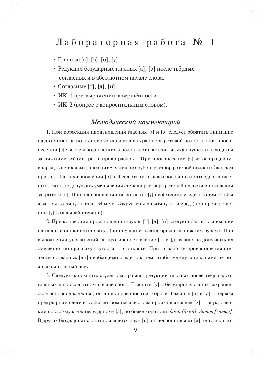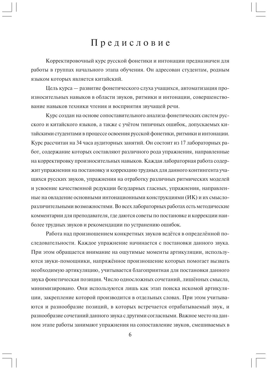 Пособие предназначено для иностранных учащихся — носителей китайского языка, прошедших вводно-фонетический курс. В нём представлен материал для работы над отдельными звуками, ритмикой слова, интонацией. Курс создан на основе сопоставительного анализа фонетических систем русского и китайского языков. Он рассчитан на 34 часа аудиторных занятий и включает 17 лабораторных работ. Ко многим заданиям даются ключи.