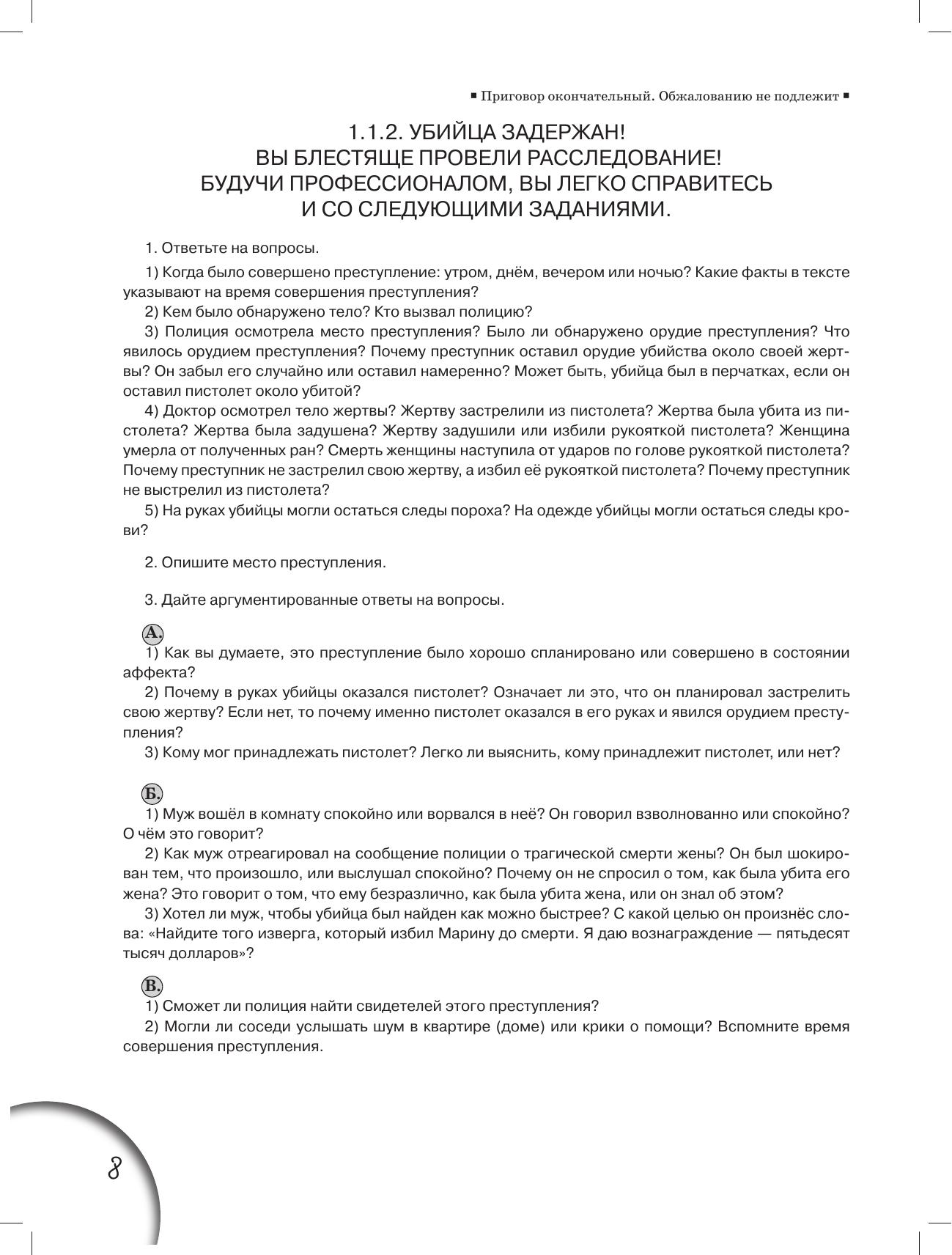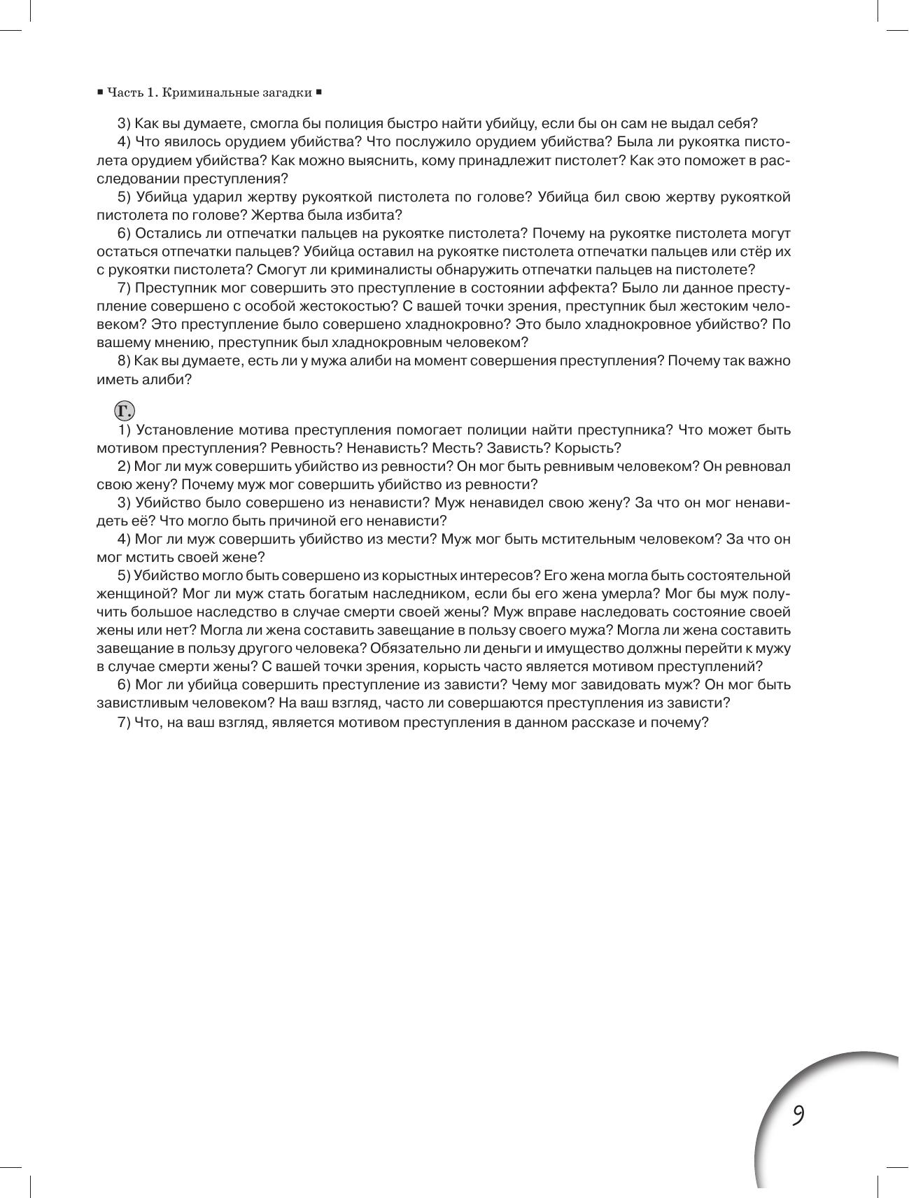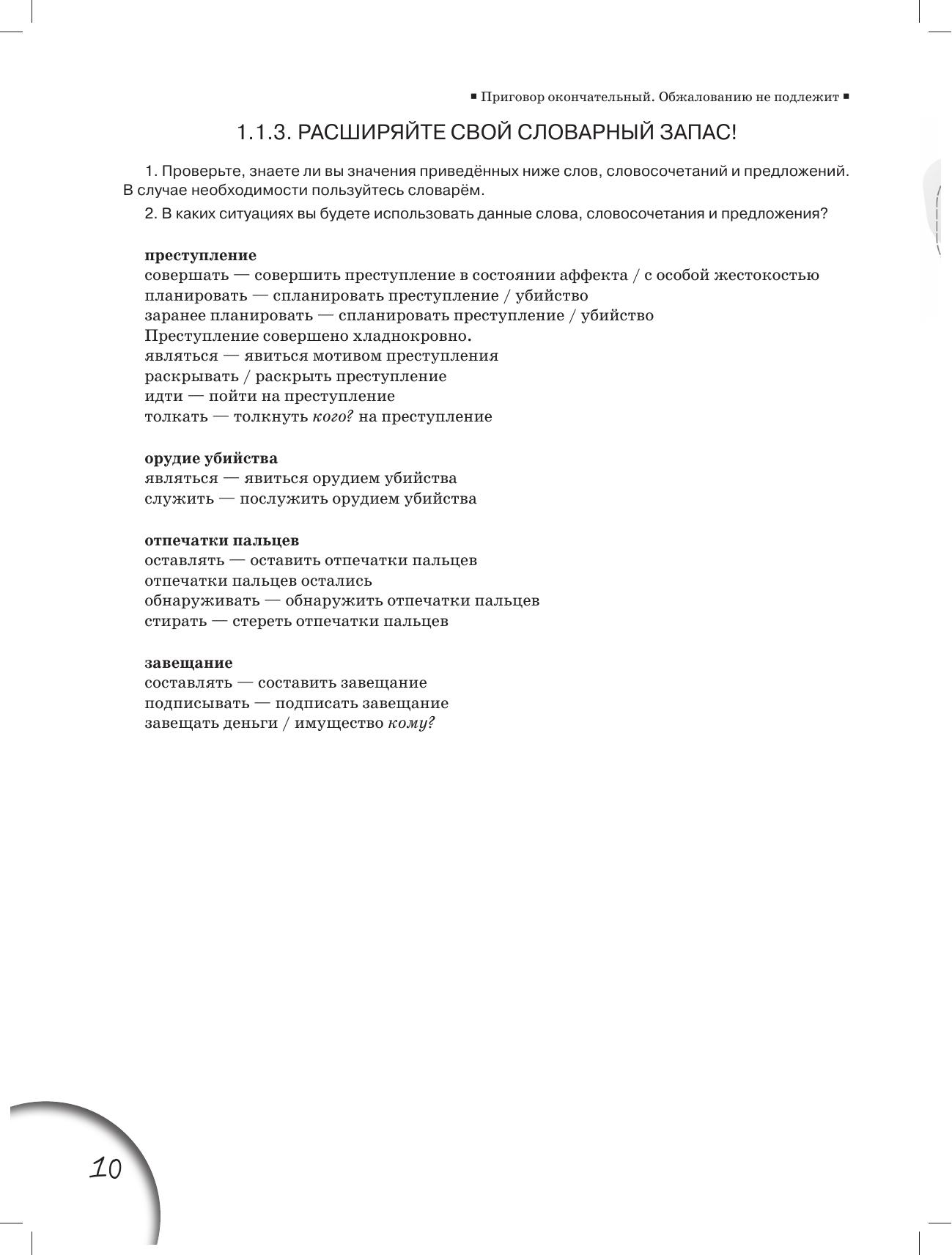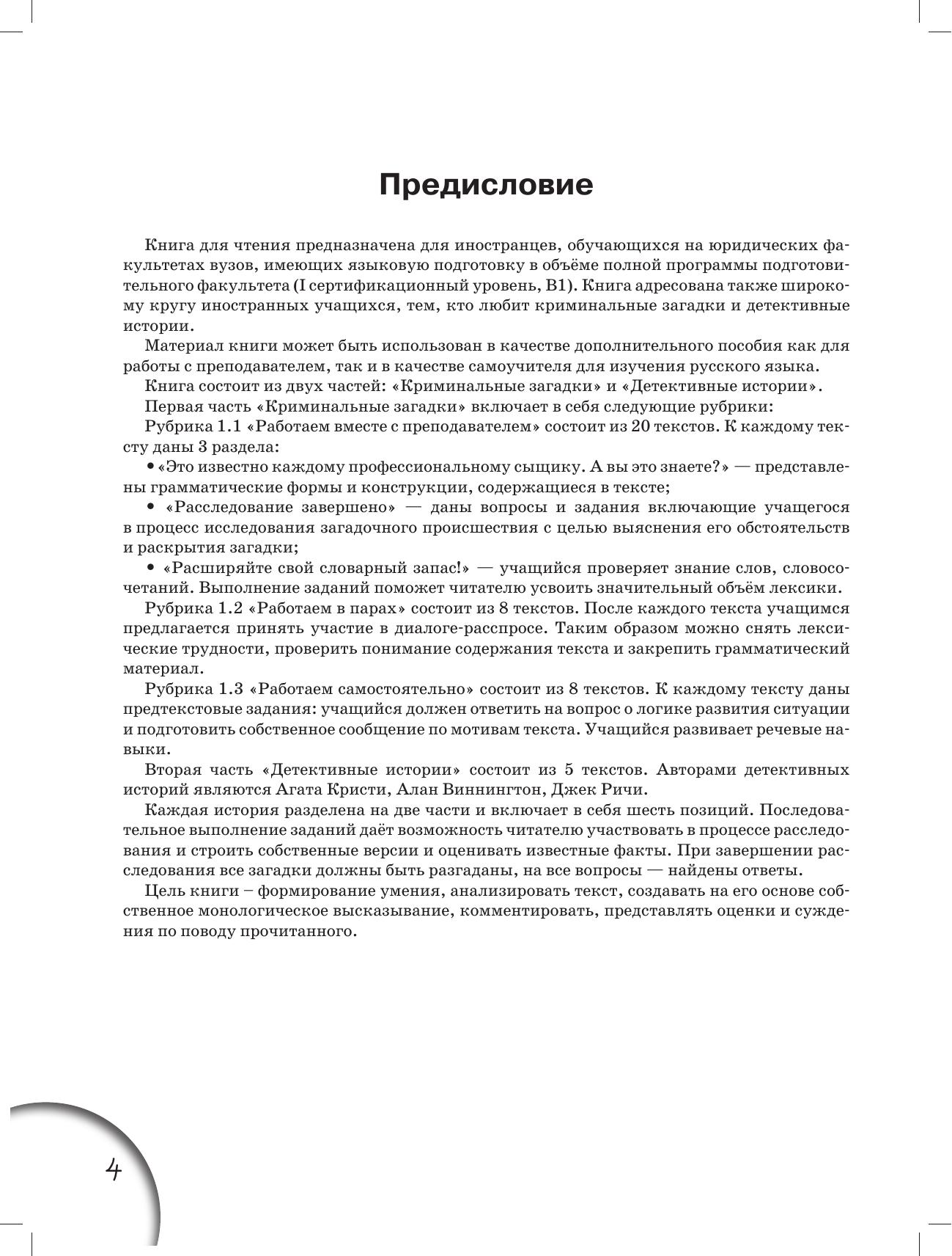 Учебное пособие предназначено для иностранцев, обучающихся на юридических факультетах вузов и имеющих языковую подготовку по русскому языку в объёме полной программы подготовительного факультета (I сертификационный уровень, В1). Книга адресована также широкому кругу иностранных учащихся, тем, кто любит криминальные загадки и детективные истории.