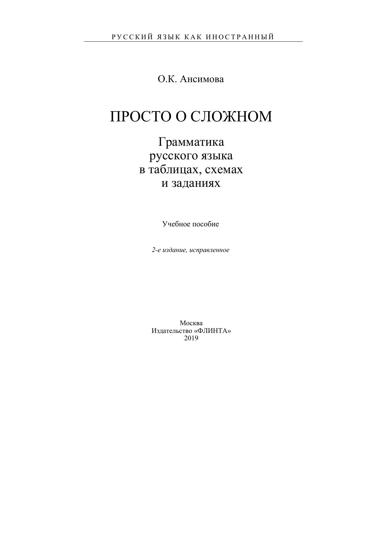 Просто о сложном: грамматика русского языка в таблицах, схемах и заданиях: учеб. пособие