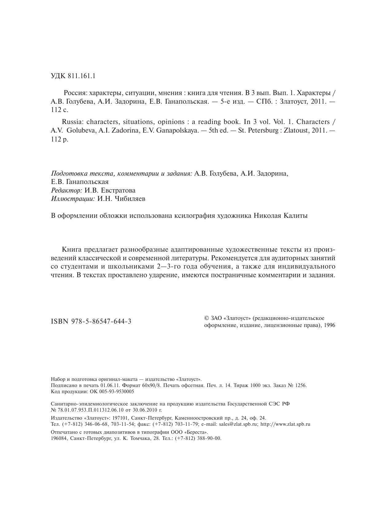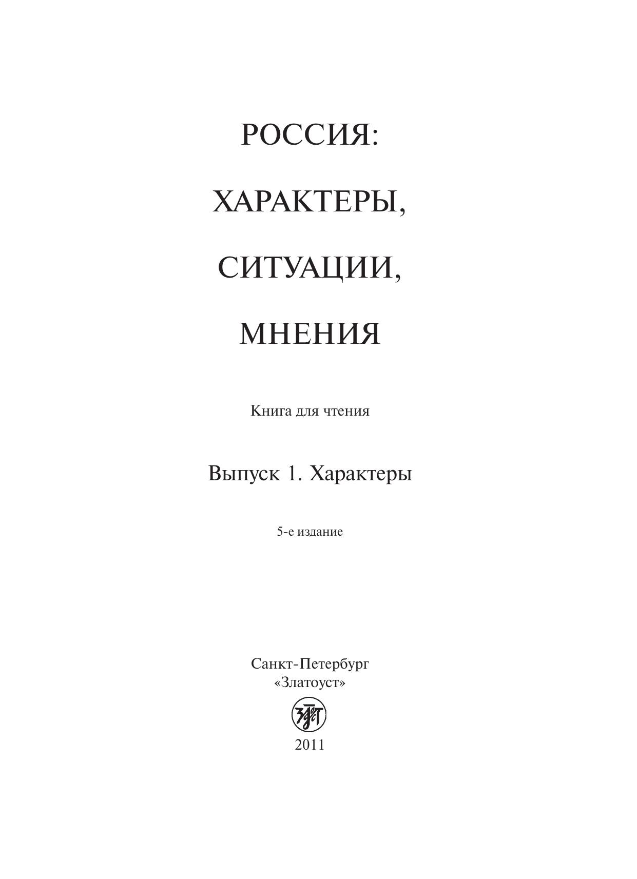 Россия: характеры, ситуации, мнения : книга для чтения. В 3 вып. Вып. 1. Характеры