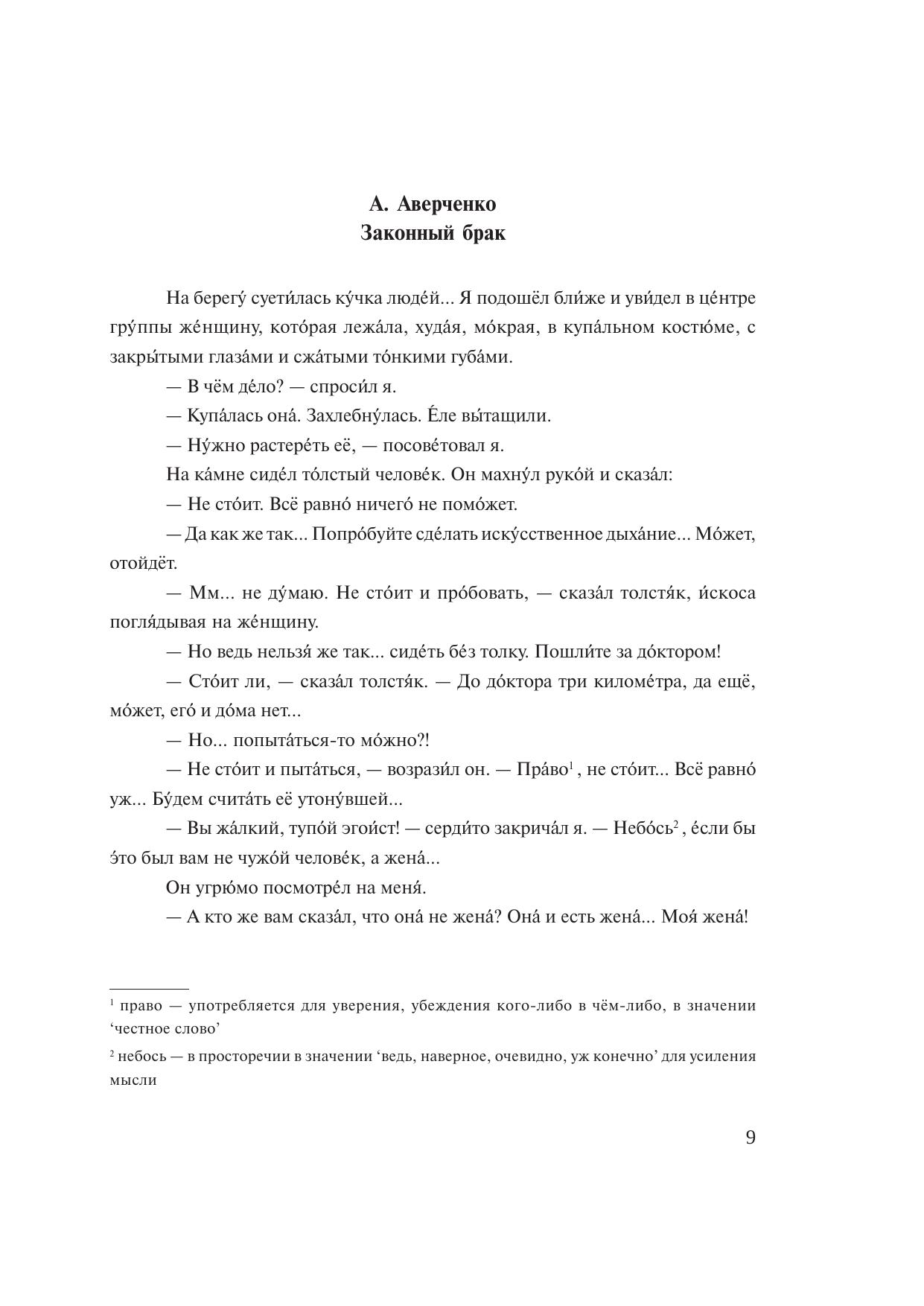 Книга предлагает разнообразные адаптированные художественные тексты из произведений классической и современной литературы. Рекомендуется для аудиторных занятий со студентами и школьниками 2-3-го года обучения, а также для индивидуального чтения. В текстах проставлено ударение, имеются постраничные комментарии и задания.