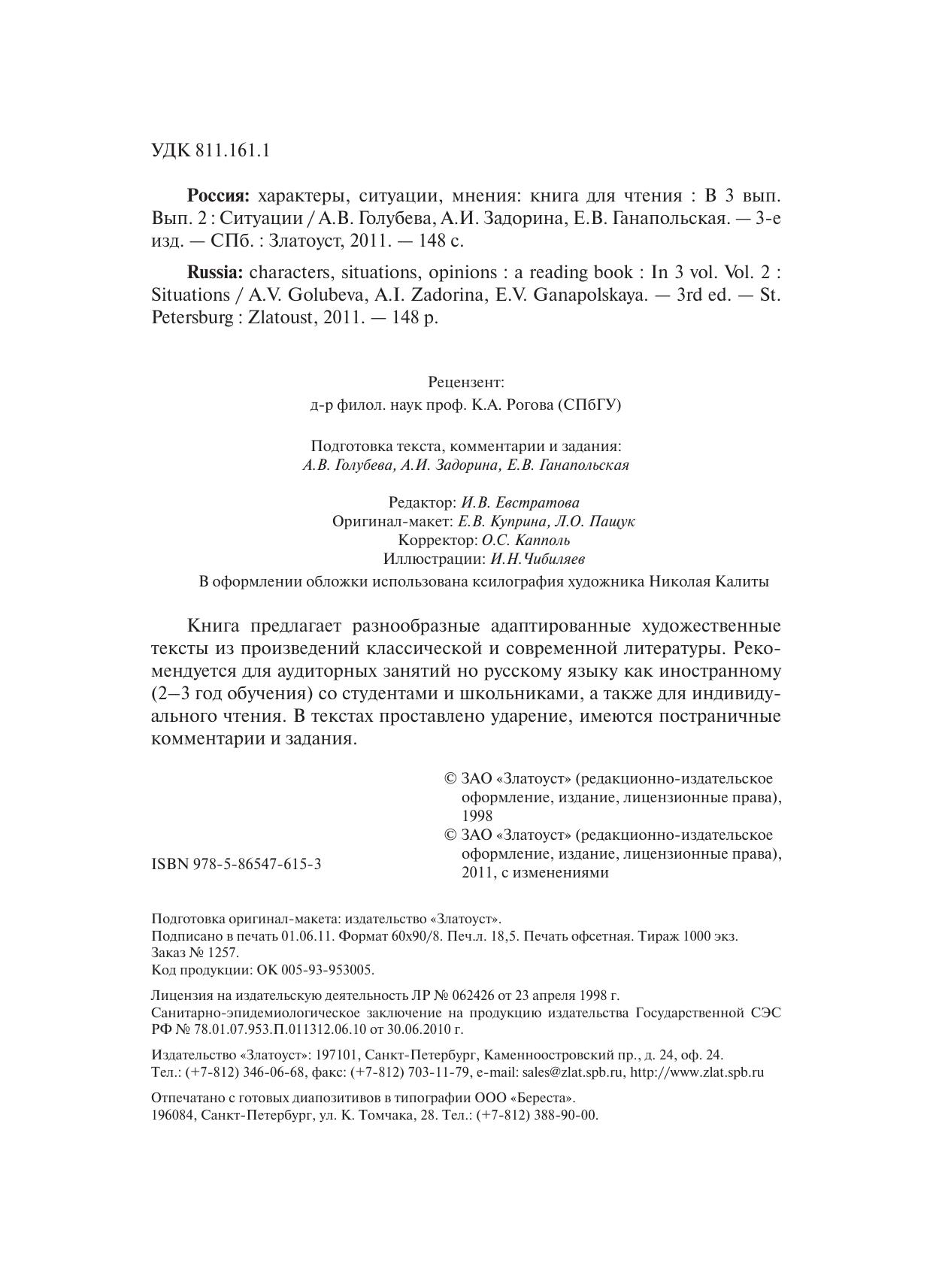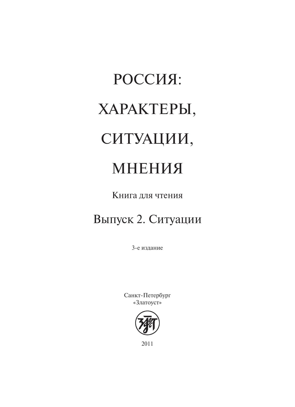 Россия: характеры, ситуации, мнения : книга для чтения. В 3 вып. Вып. 2. Ситуации