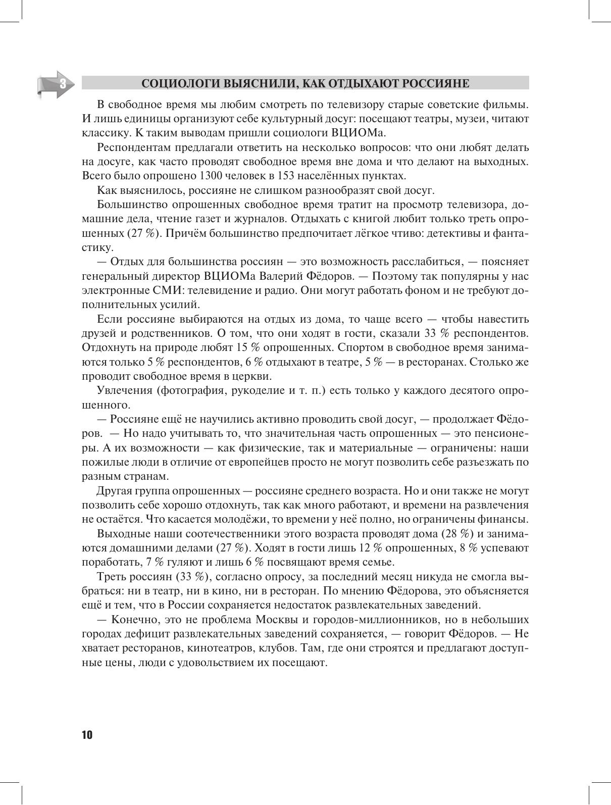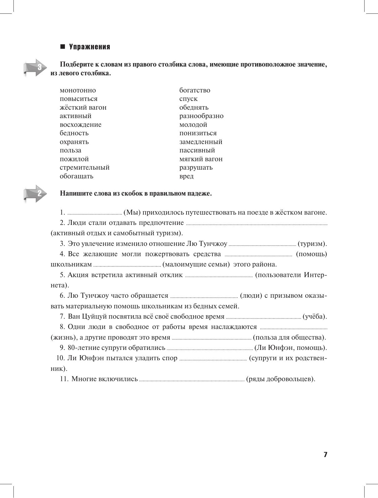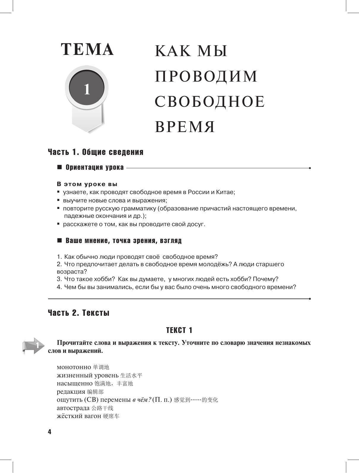 Для учащихся, владеющих русским языком в объеме первого сертификационного уровня. Пособие состоит из 12 тем. Включает тексты из российской периодики с учётом их актуальности, социокультурной значимости, познавательной ценности для учащихся, а также упражнения для развития навыков устной и письменной речи.