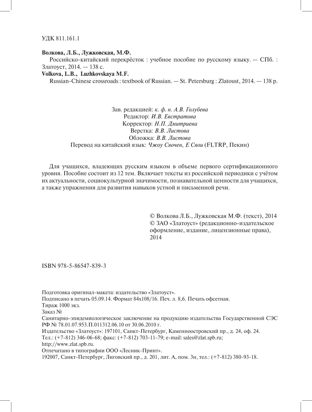 Российско-китайский перекрёсток : учебное пособие по русскому языку