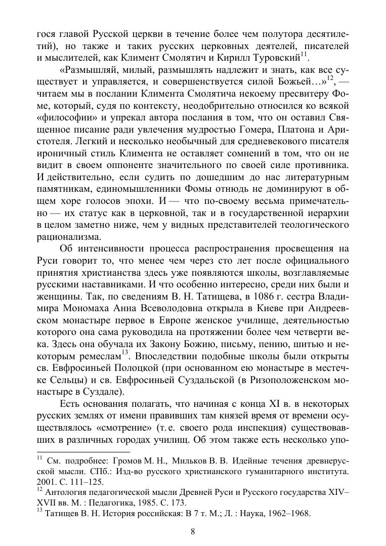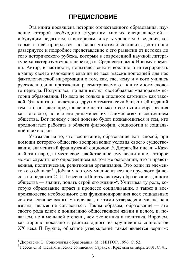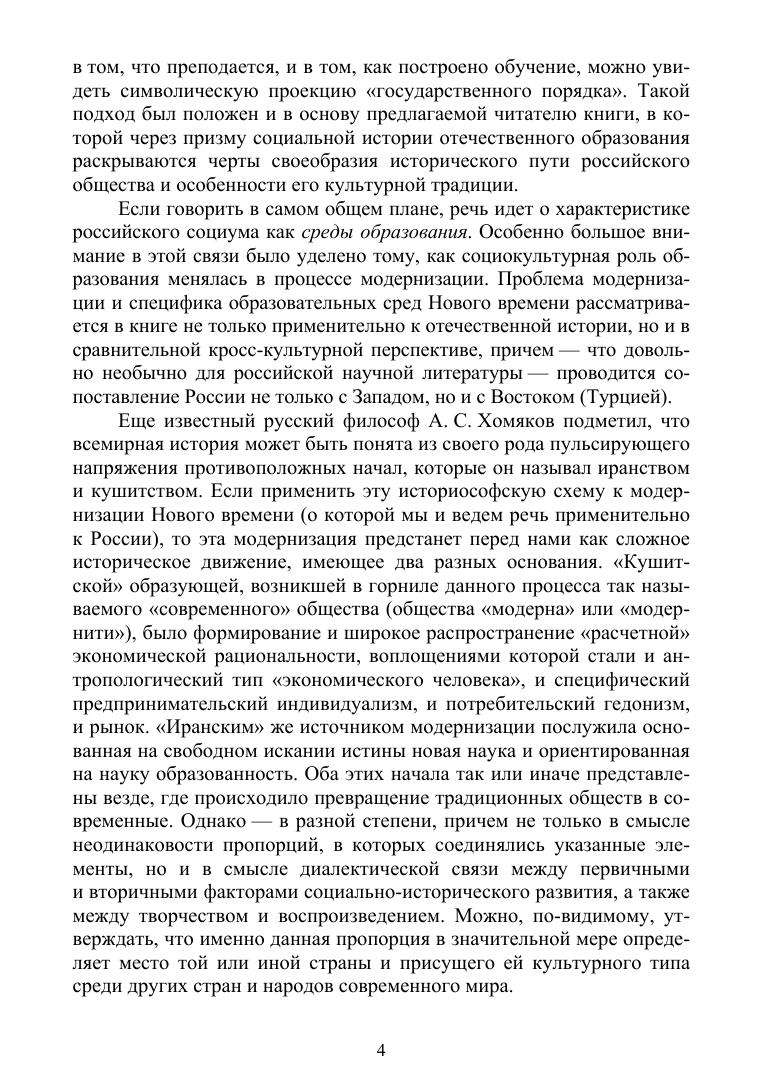 Учебное пособие посвящено становлению отечественной традиции образования. Рассмотрены специфические особенности российской модели модернизации, анализируется роль образования в этом процессе, проводится ее сопоставление с социально-историческим развитием других стран Запада и Востока. Приведены подробные сведения о состоянии грамотности на Руси и в России, о существовавших здесь школах и училищах, об образовательных запросах россиян эпохи Средневековья и раннего Нового времени. Рассчитана на студентов классических и педагогических университетов, а также на студентов технических вузов и вузов искусства, для углубленного изучения культурологии и российской истории.